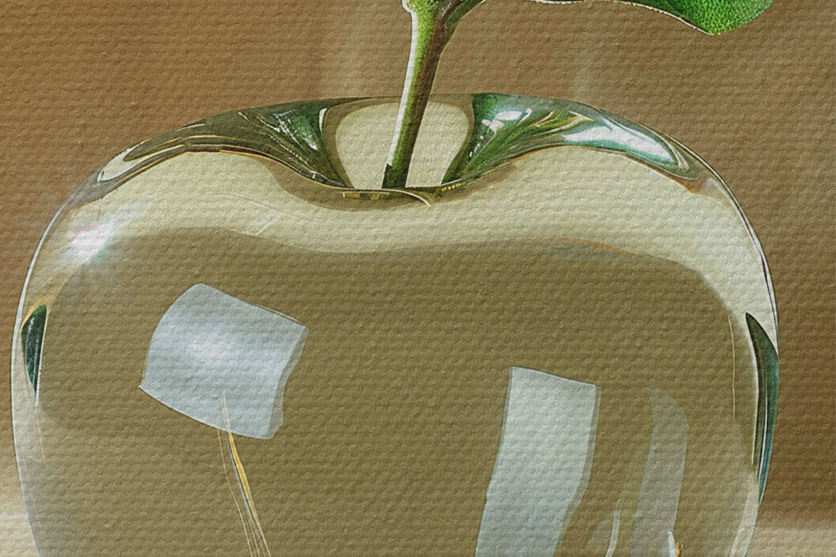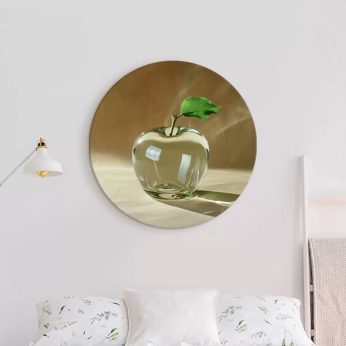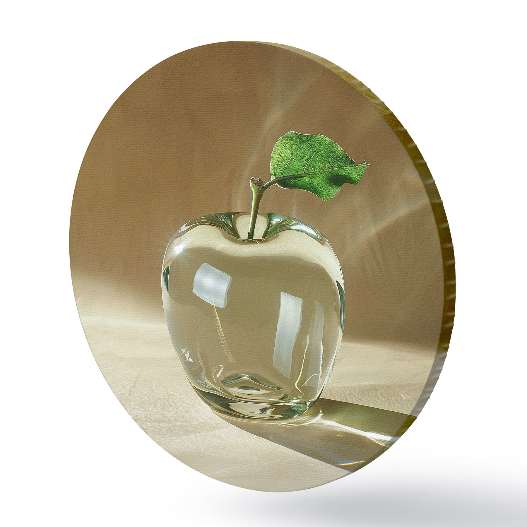 Runde Gemälde Transparenter Glasapfel auf hellem Hintergrund r40913
