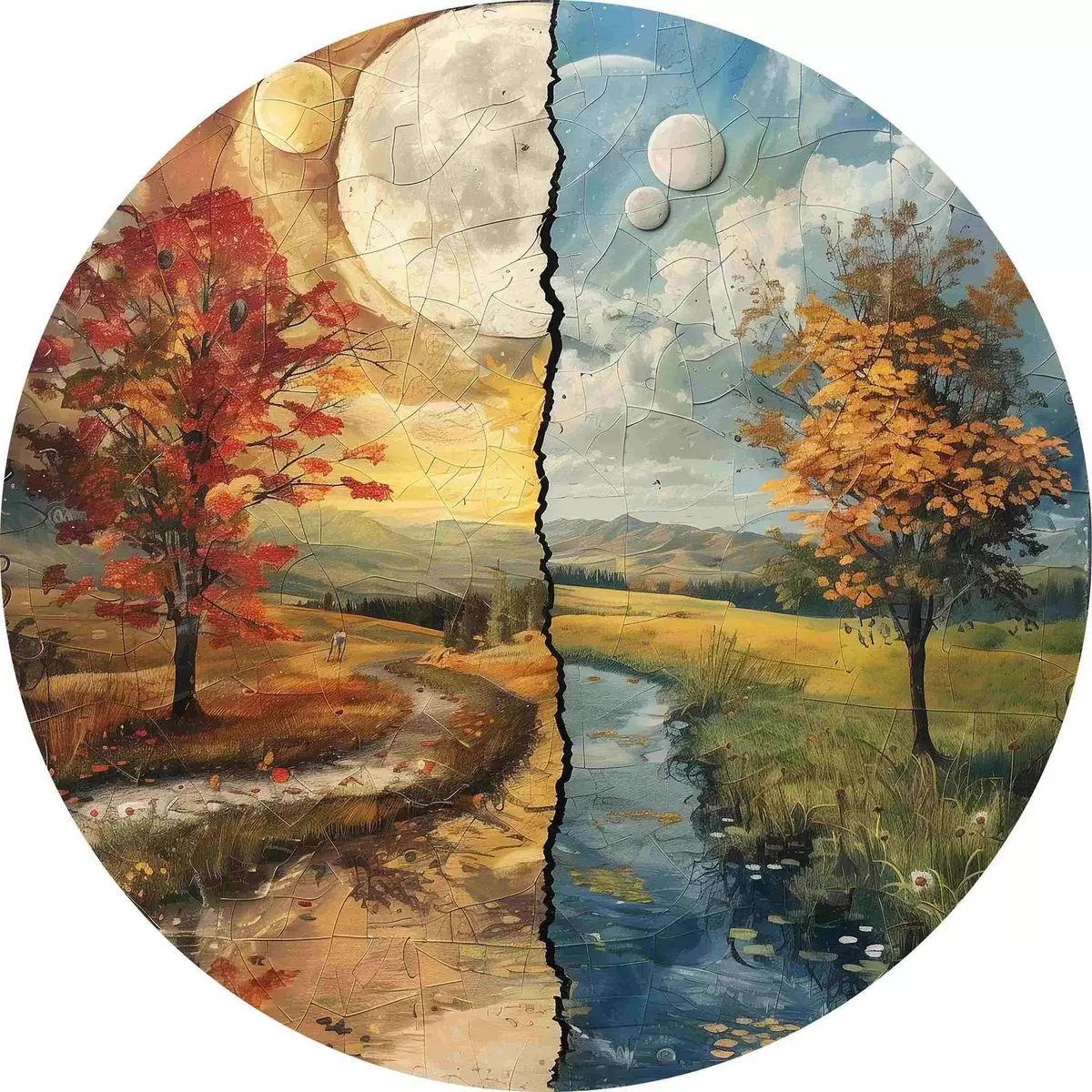 Runde Gemälde Jahreszeiten in der Aquarellmalerei r40923