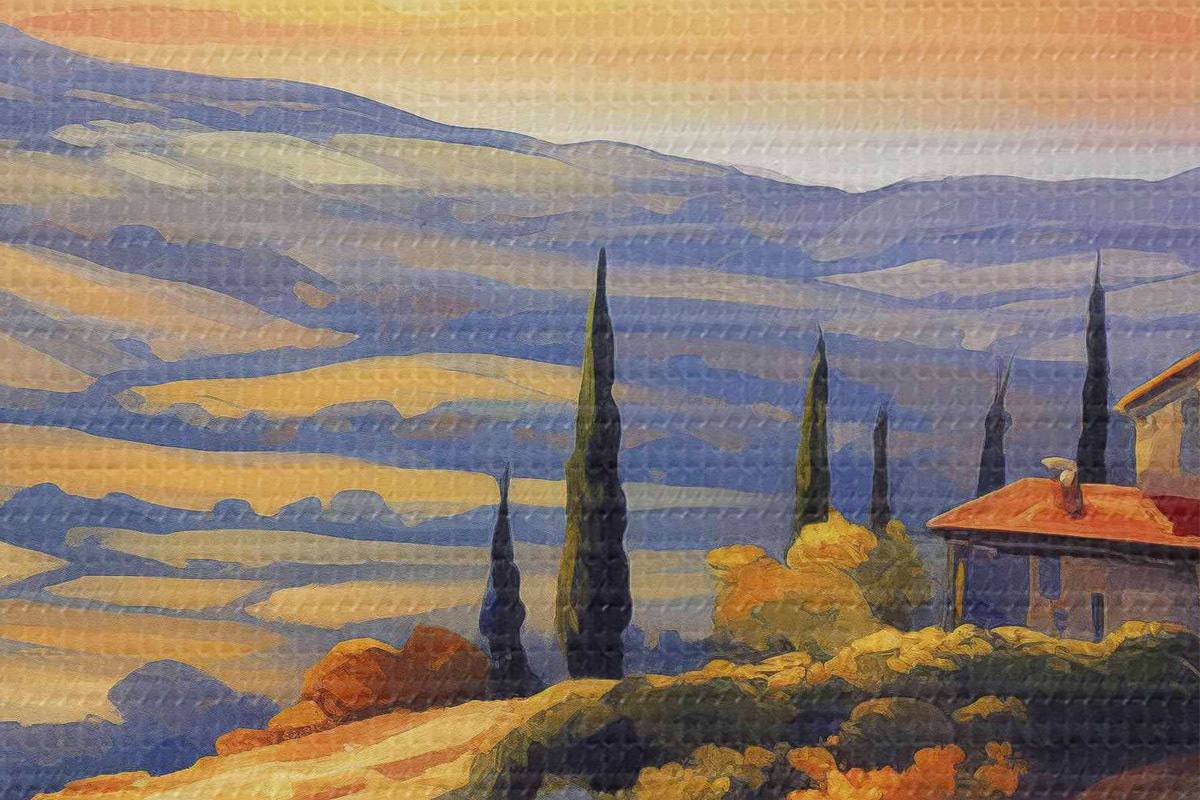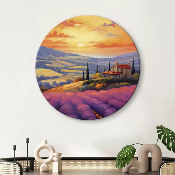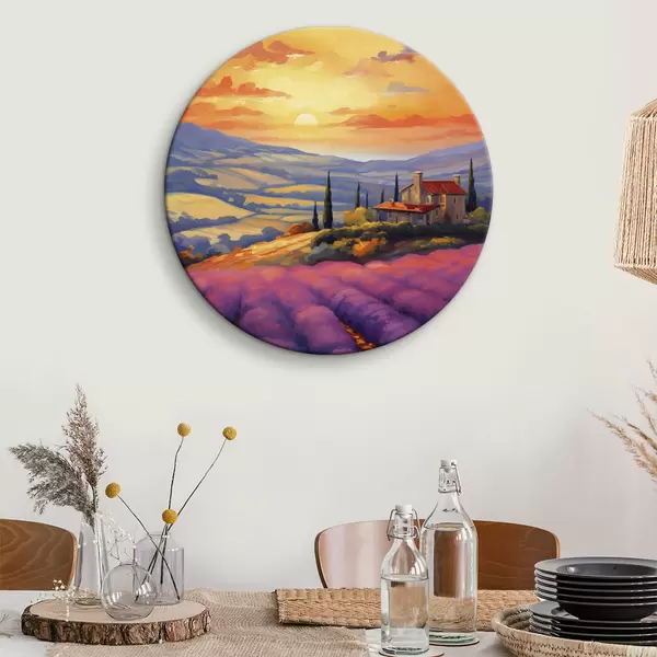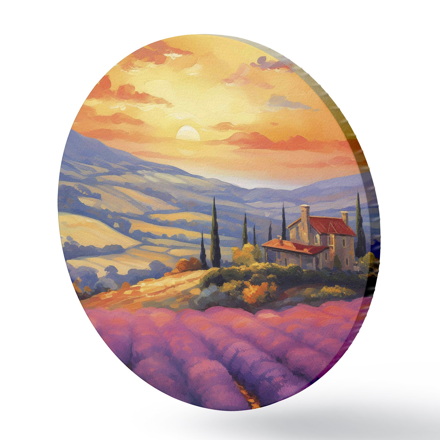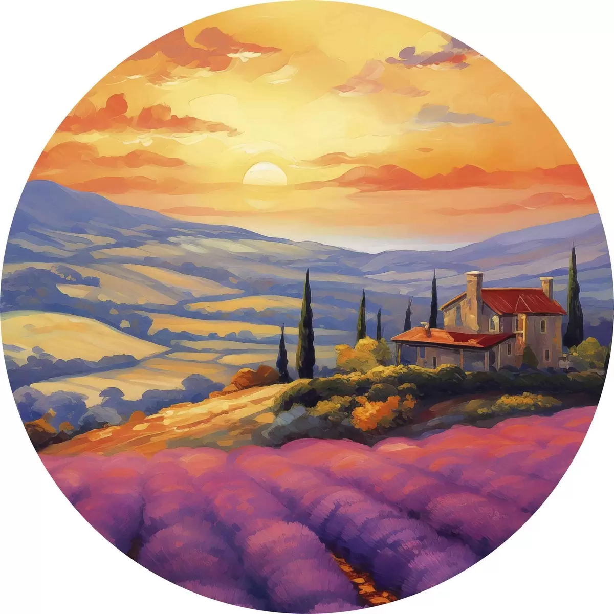 Runde Gemälde Sonnenuntergang in der Toskana, Lavendelfelder, schöne Landschaften, Aquarell r40942