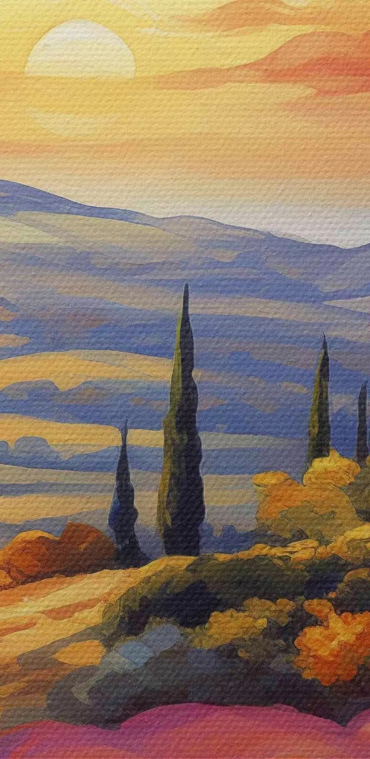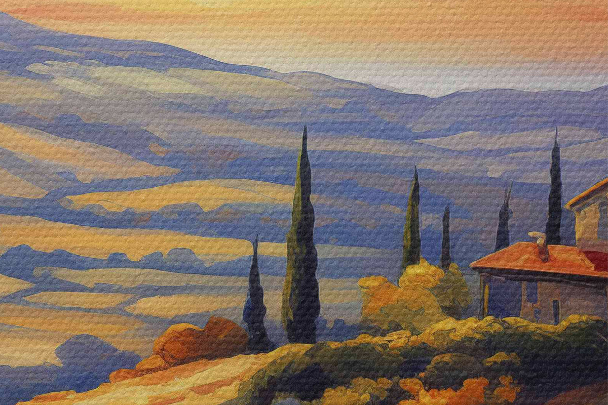 Bild Sonnenuntergang in der Toskana, Lavendelfelder, schöne Landschaften, Aquarell Nr r40942