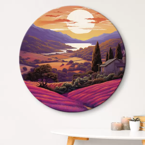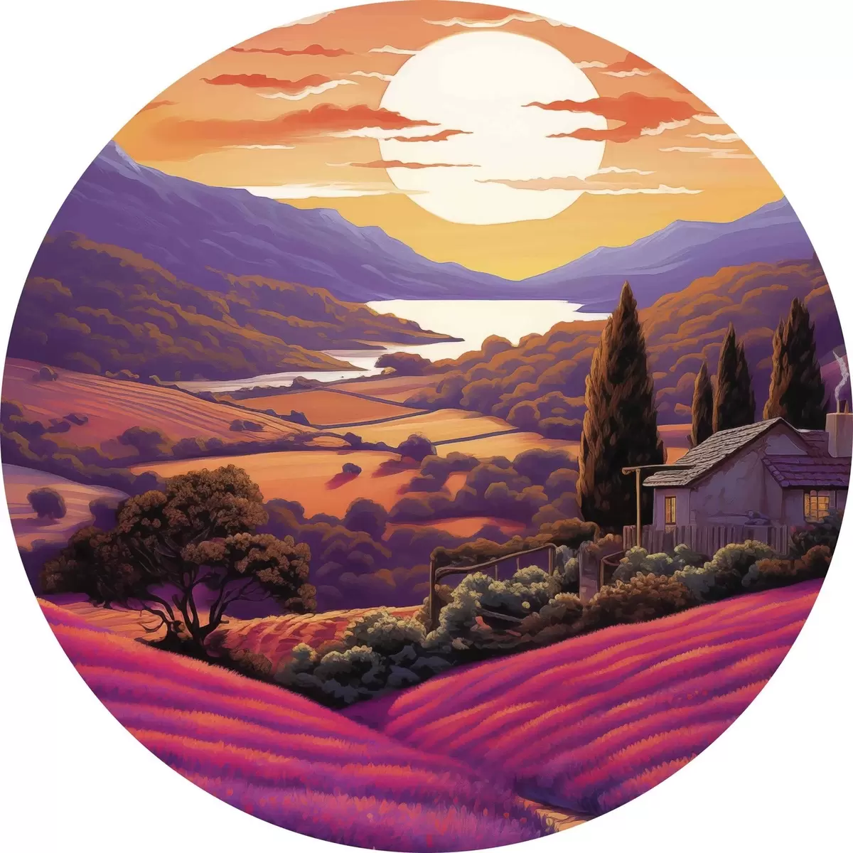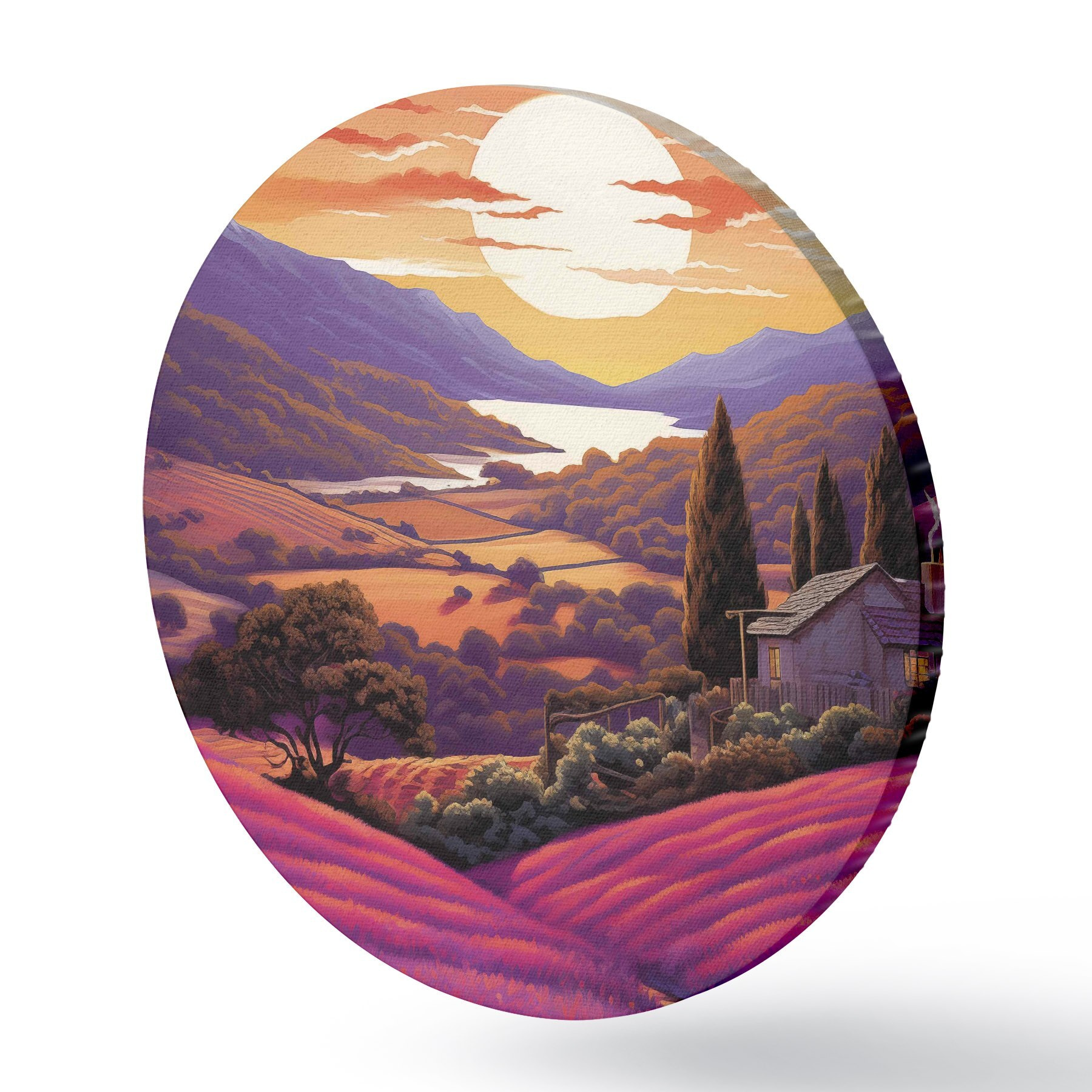 Runde Gemälde Lavendelfelder, Sonnenuntergang, schöne Landschaften, Berge r40943