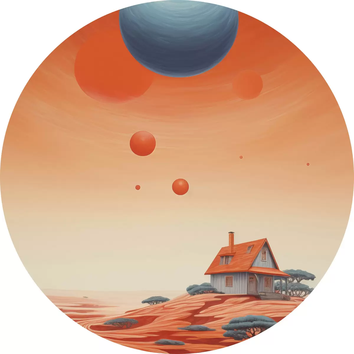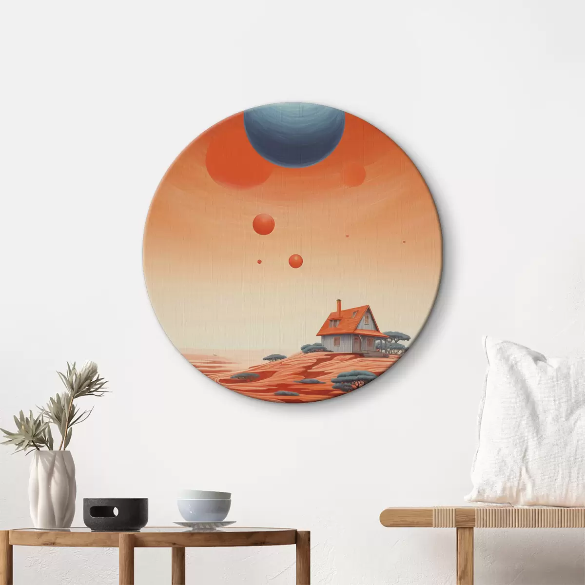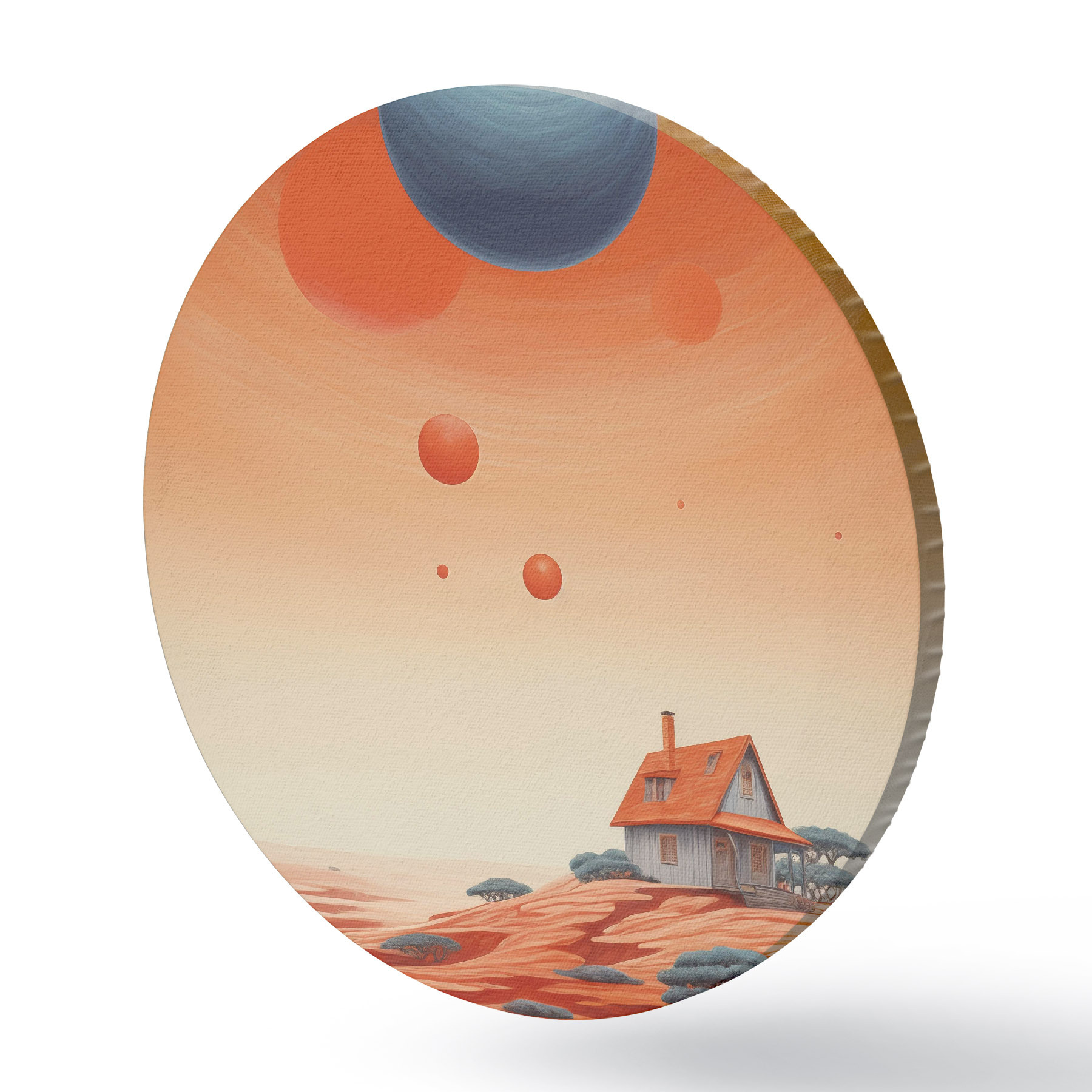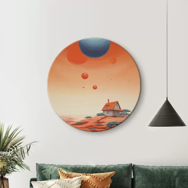 Runde Gemälde Wüste mit Haus, futuristische Kunst, Weltraum, Planet r40944