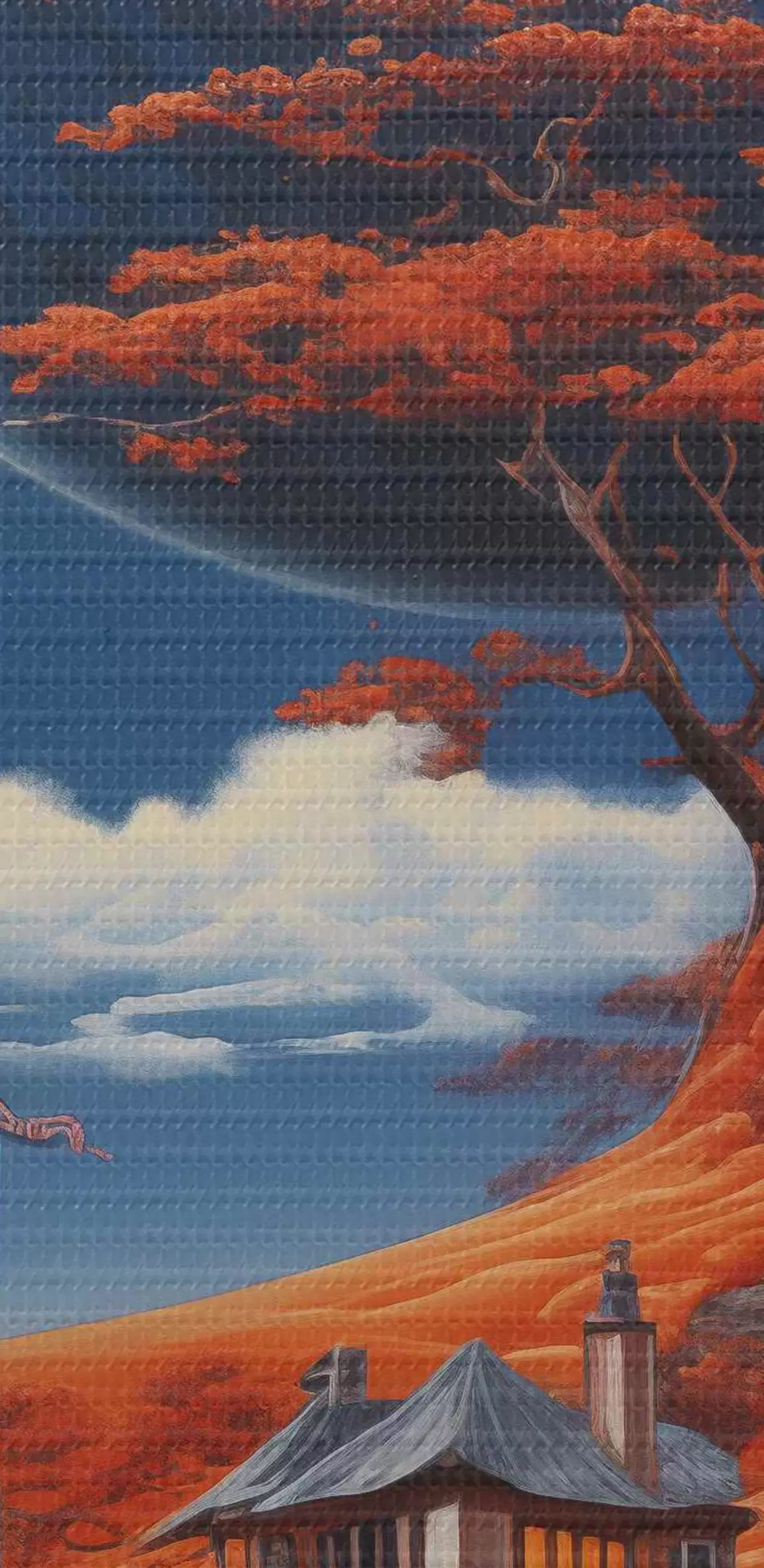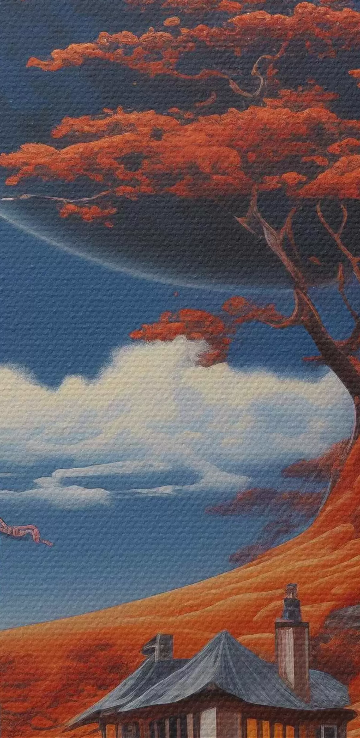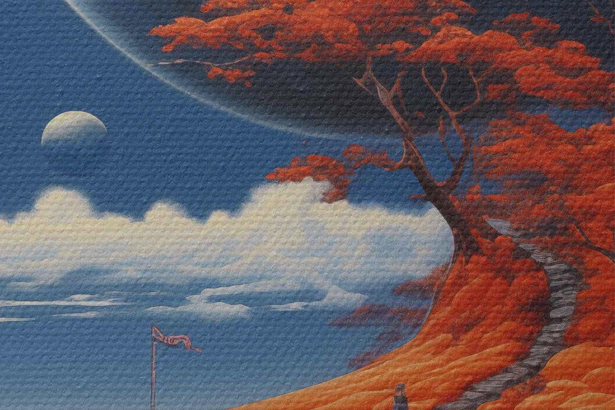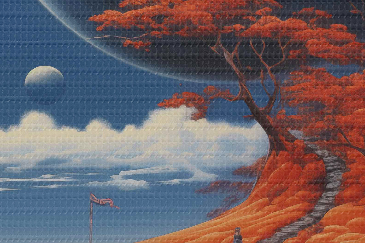 Bild Space Illustration, Planeten, blauer Himmel, Haus auf dem Hügel, Bäume Nr r40946
