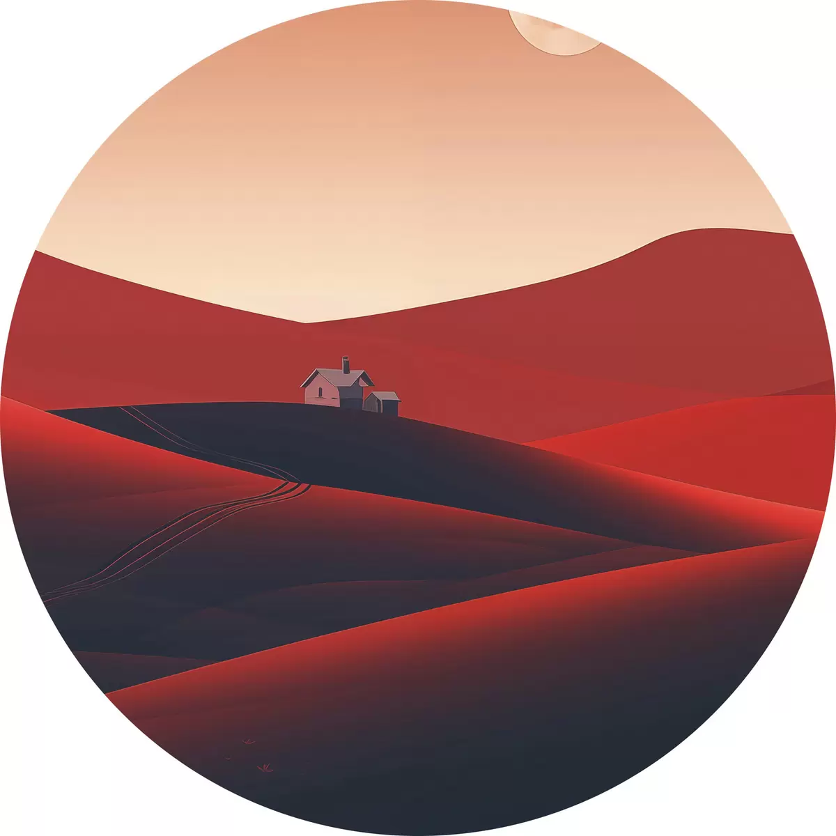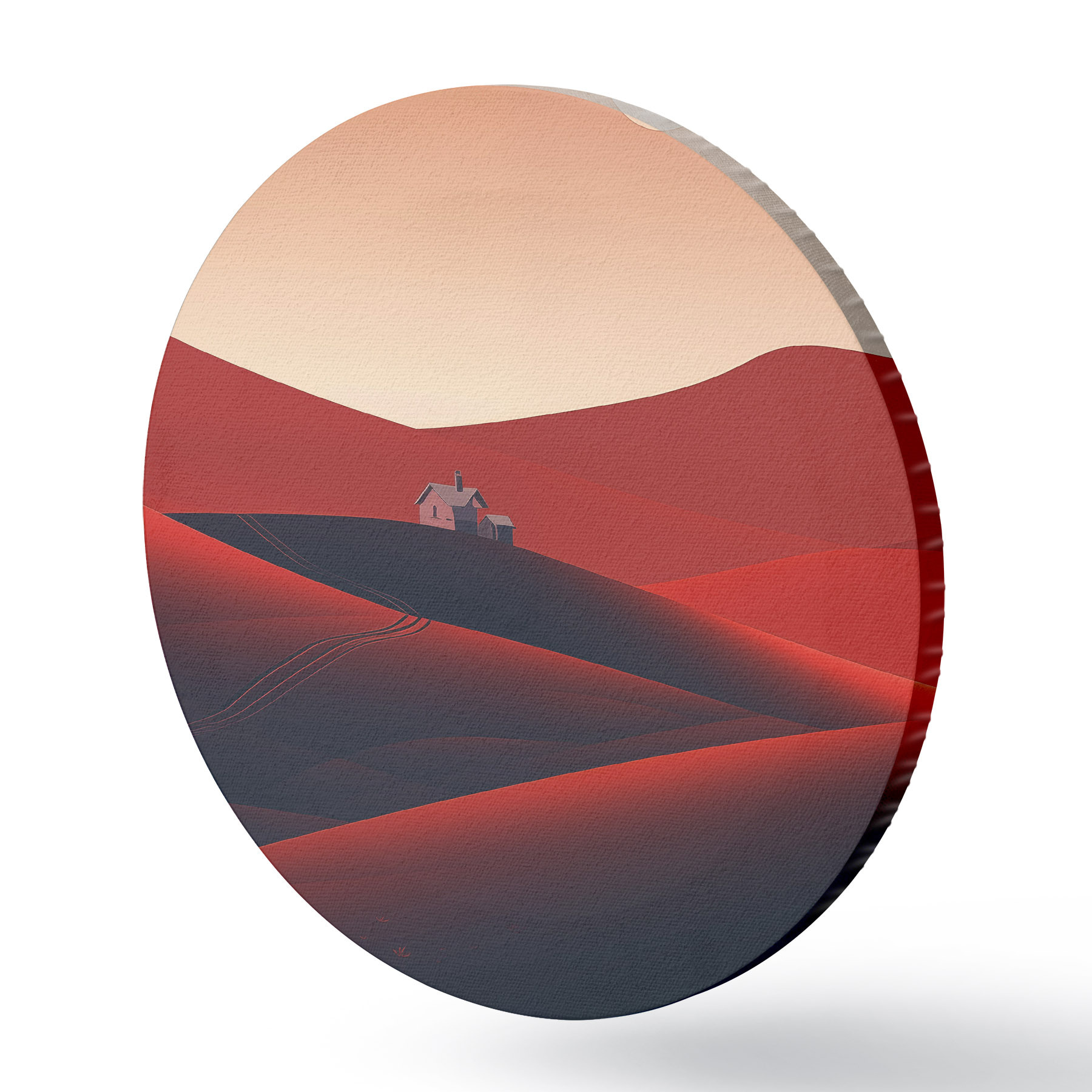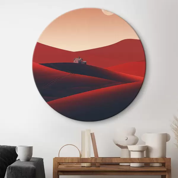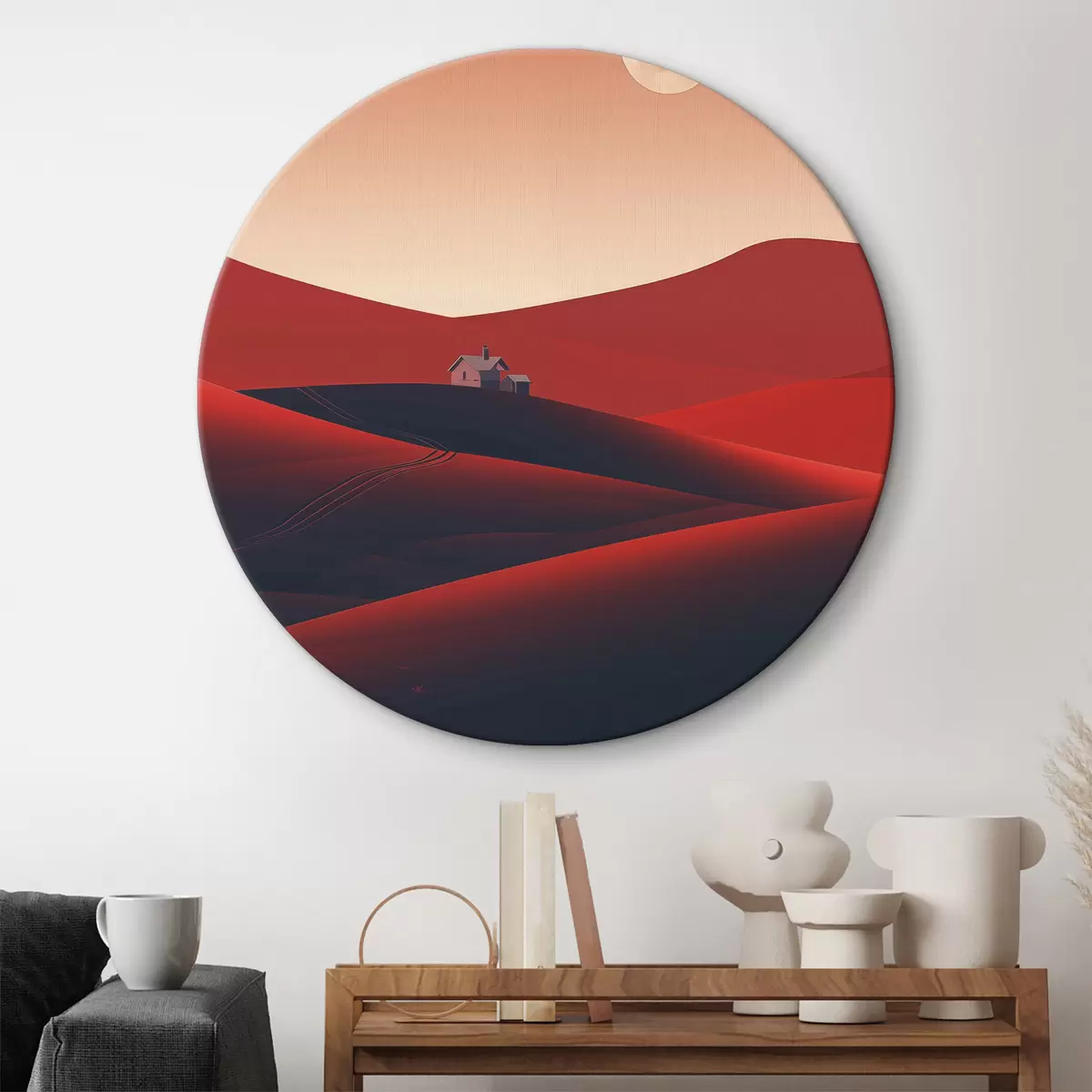 Runde Gemälde Minimalistische Wüstenlandschaft mit Haus und Mond r40953