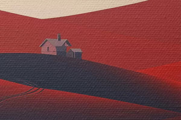 Bild Minimalistische Wüstenlandschaft mit Haus und Mond Nr r40953