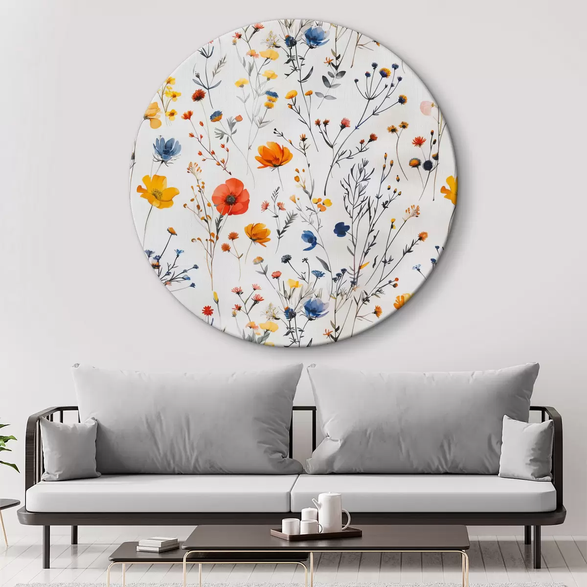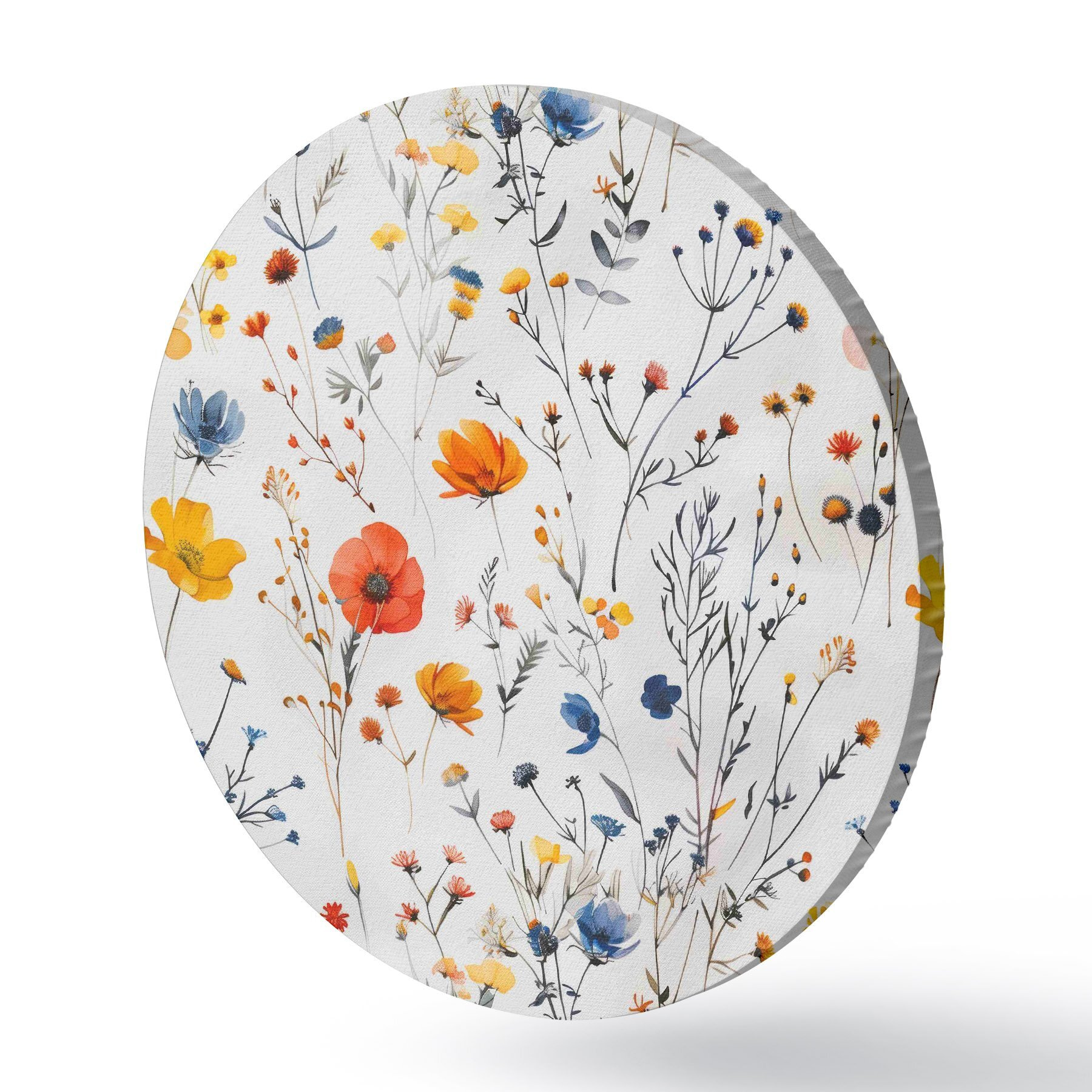 Runde Gemälde Blumenkomposition mit Mohnblumen und anderen Wildblumen r40959
