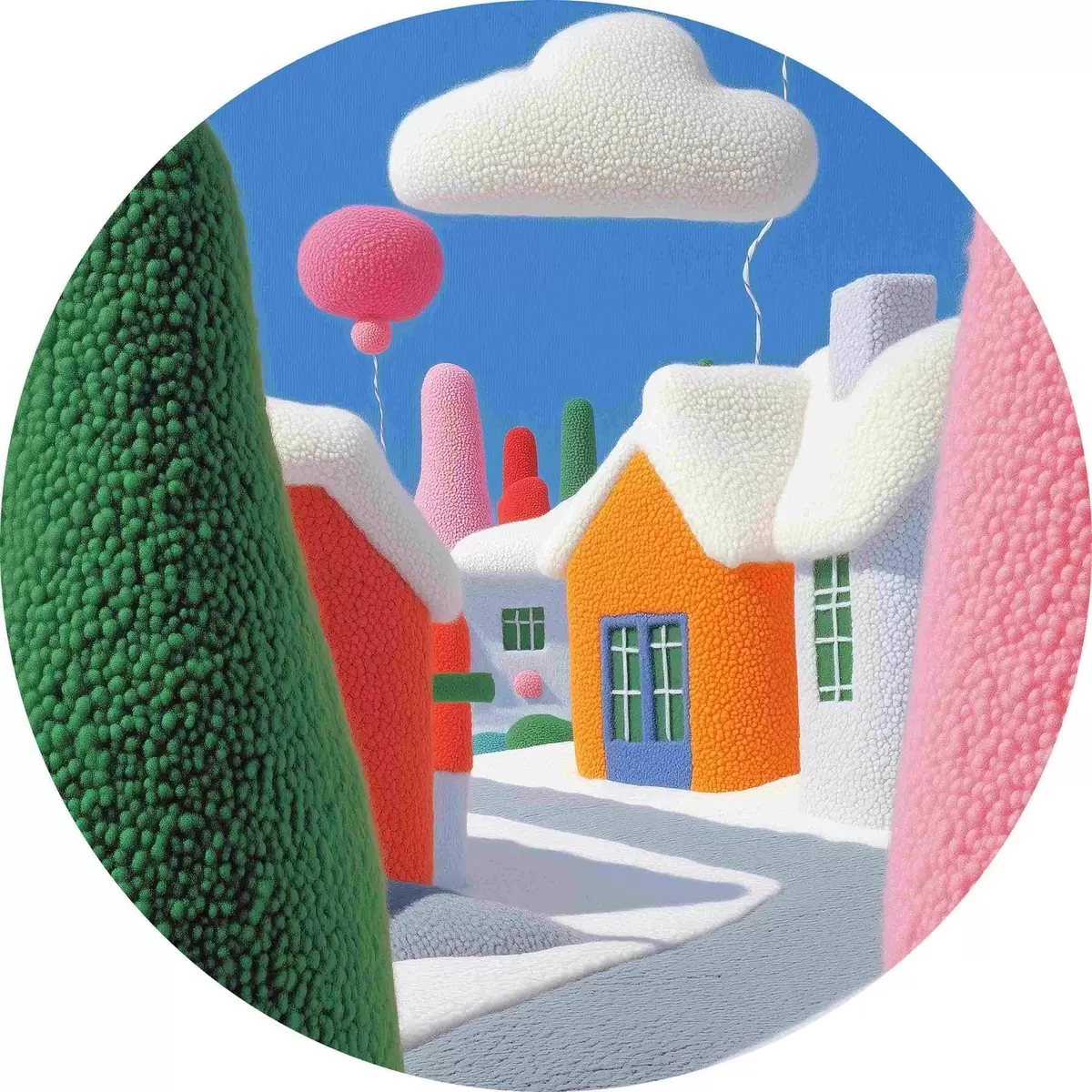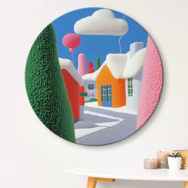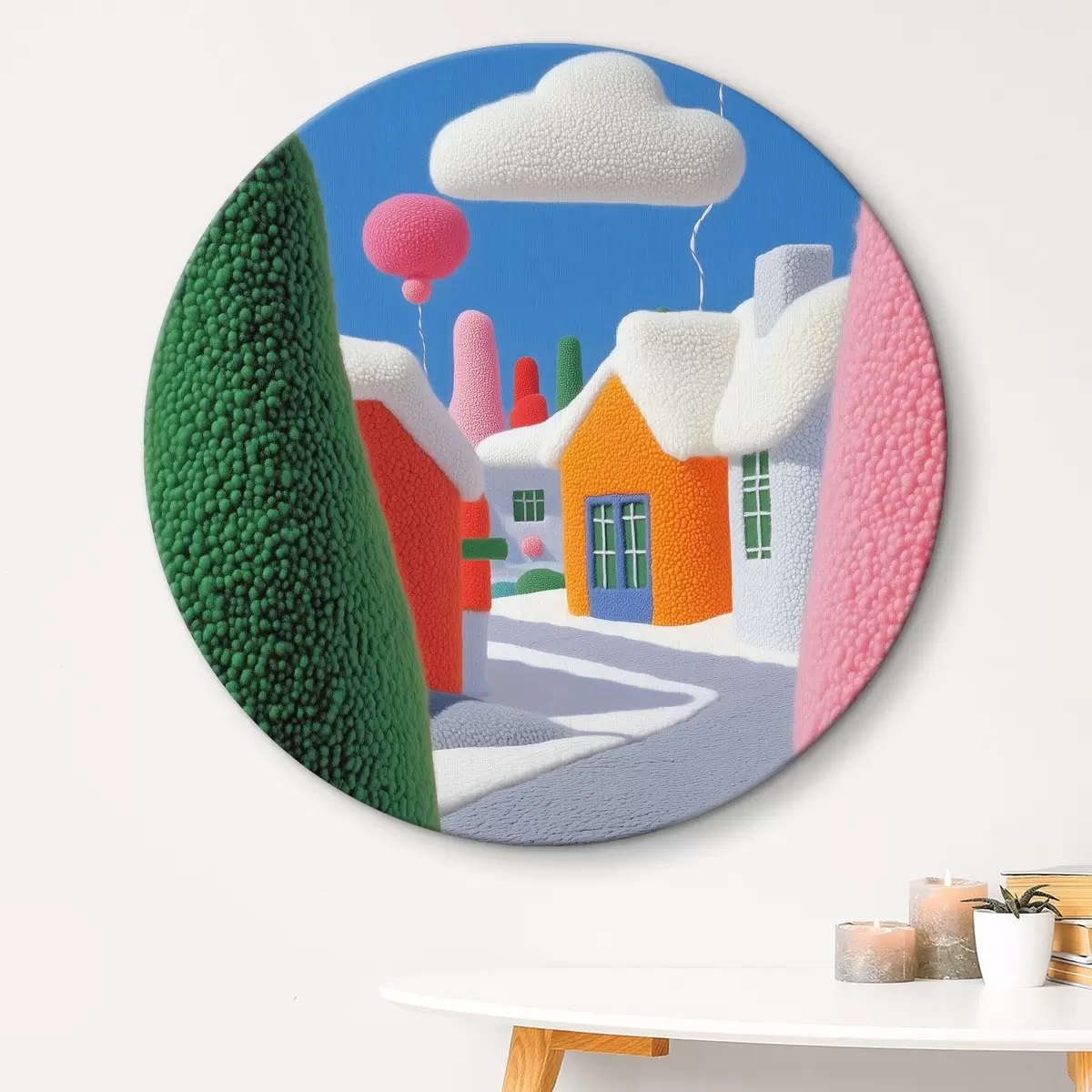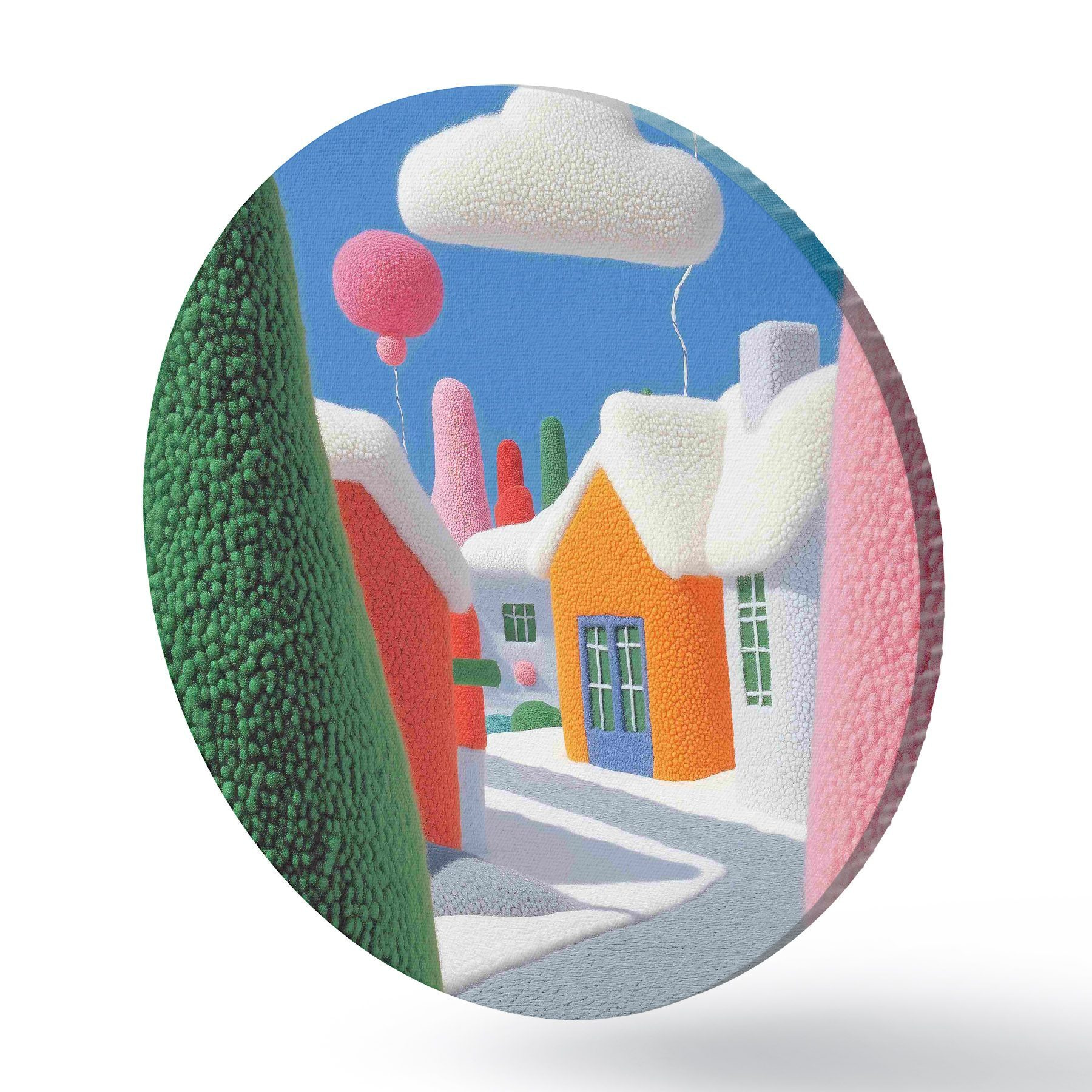 Runde Gemälde Straße mit Wolken und Filzluftballons r40970