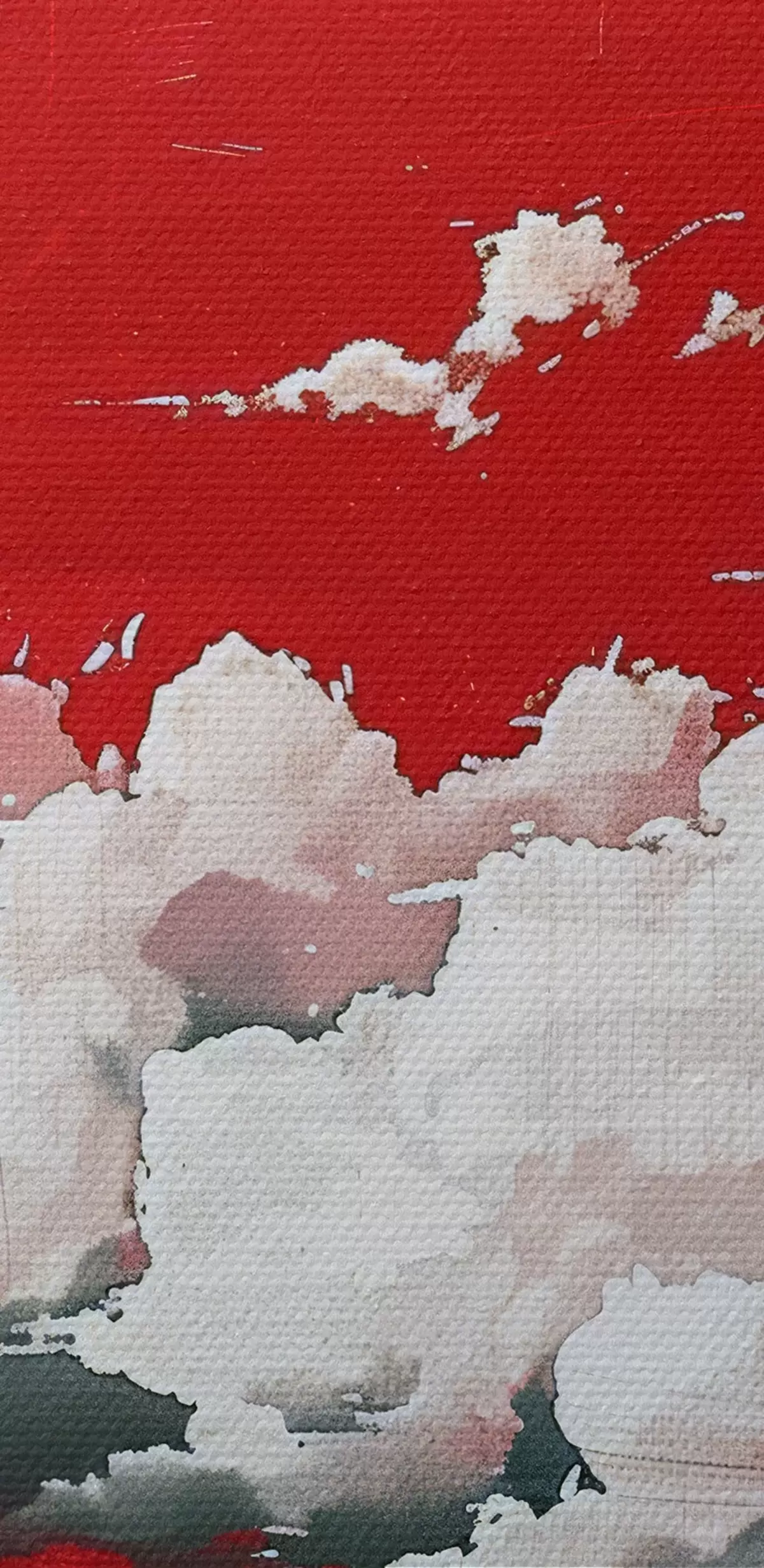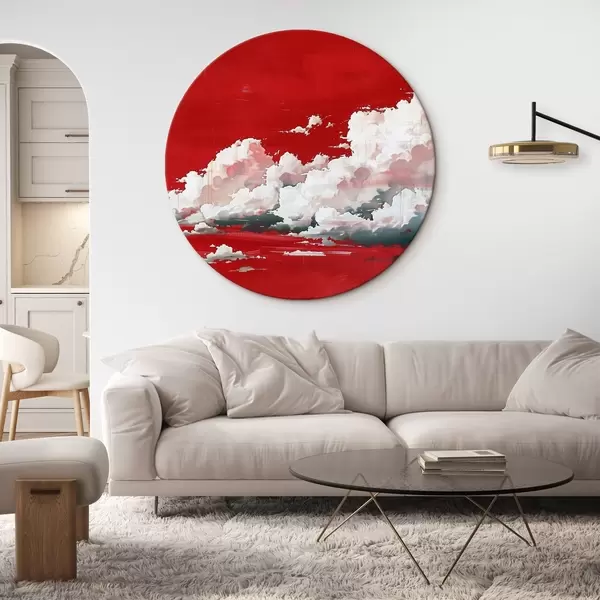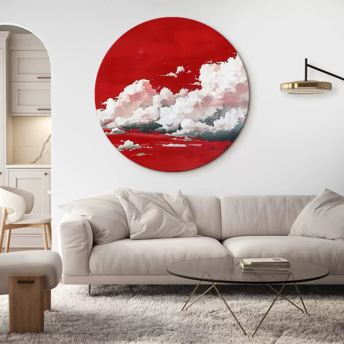 Runde Gemälde Gewitterwolken auf rotem Hintergrund r40987