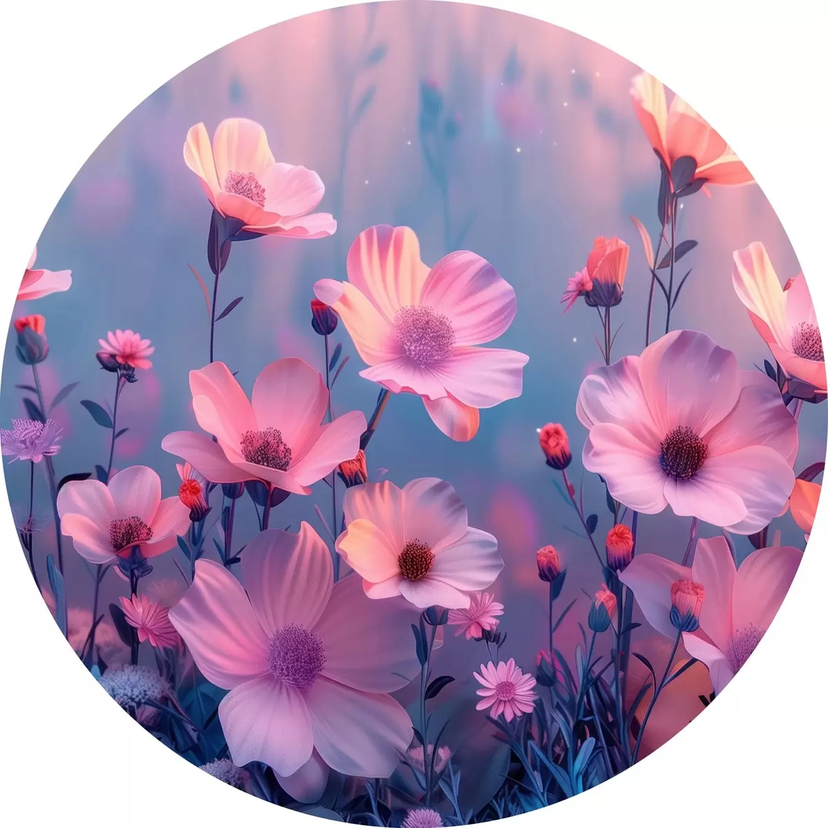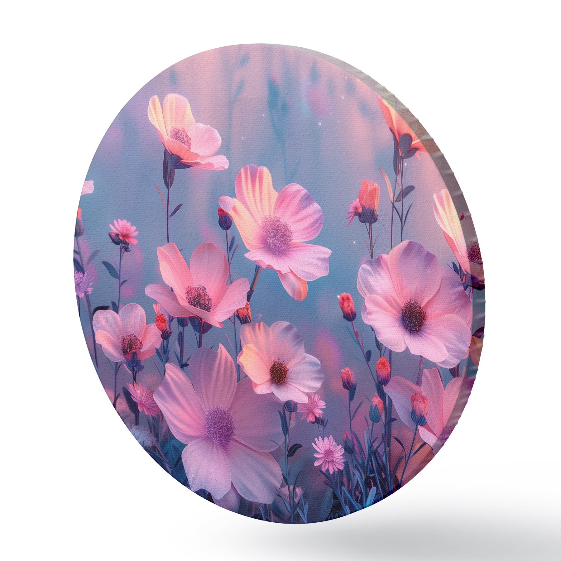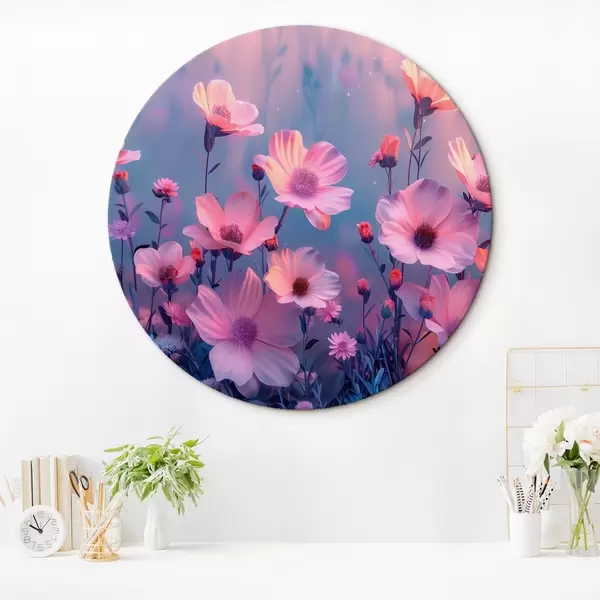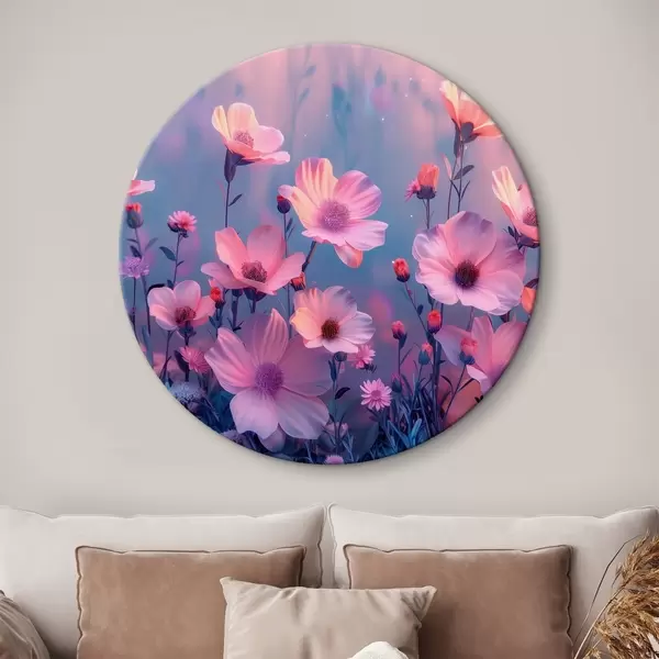Runde Gemälde Märchenhafte Blumen in rosa und blauen Tönen r40990