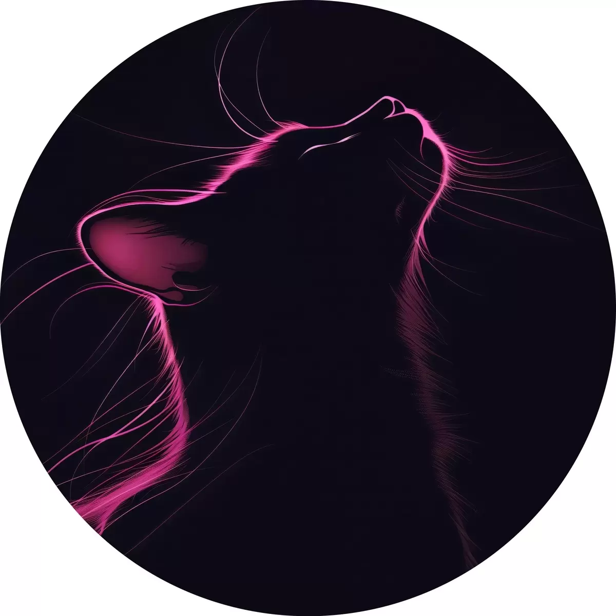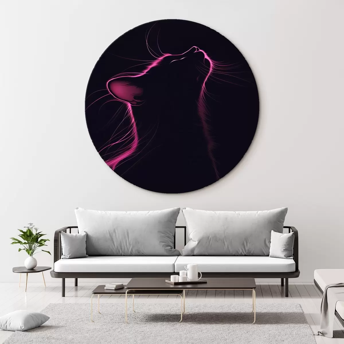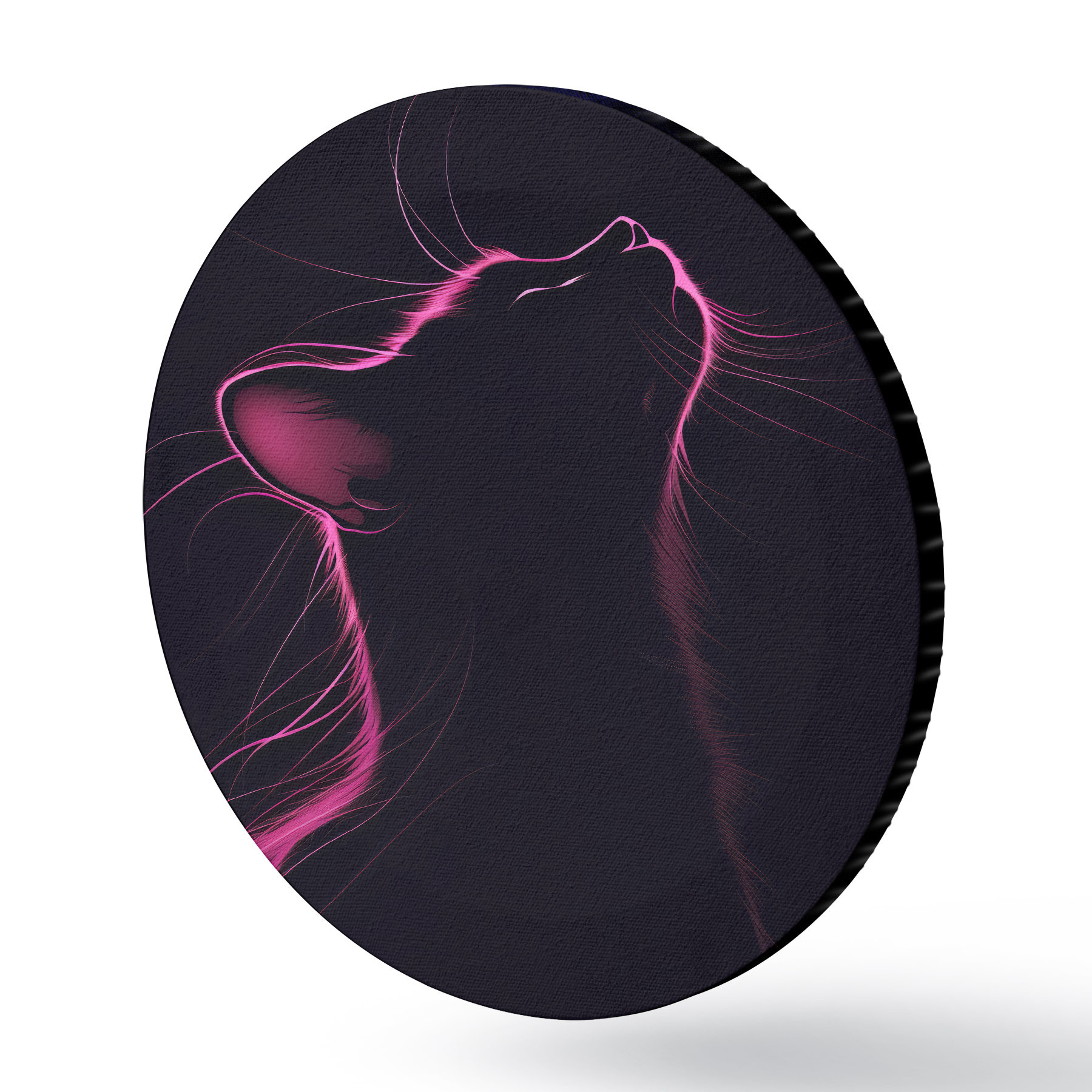 Runde Gemälde Rosa Neonkatze auf schwarzem Hintergrund r40994