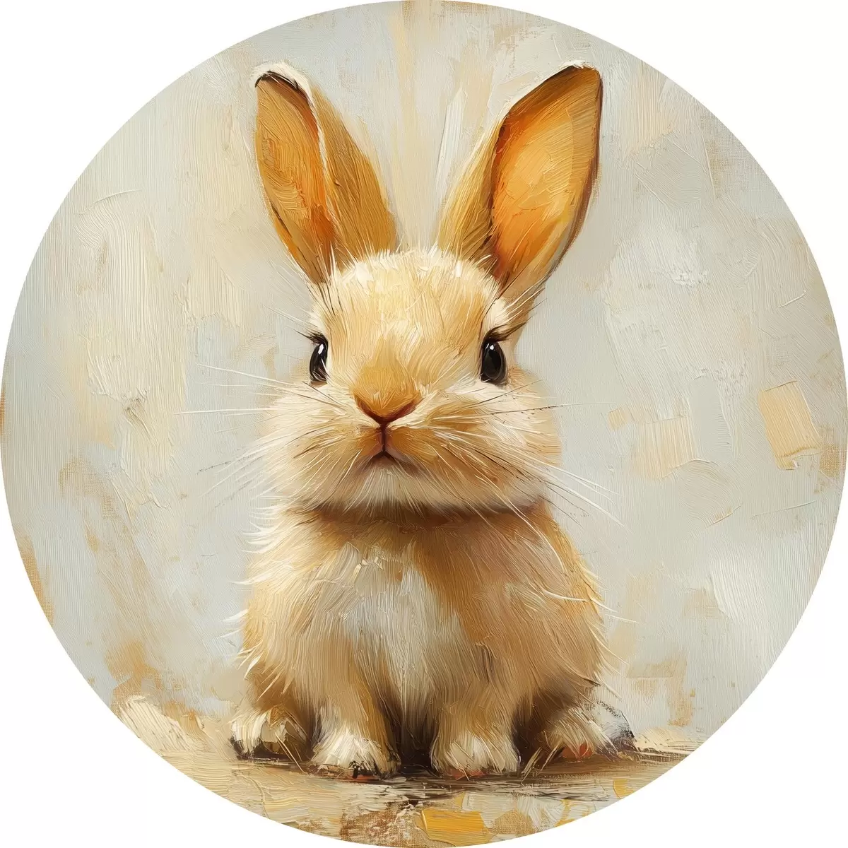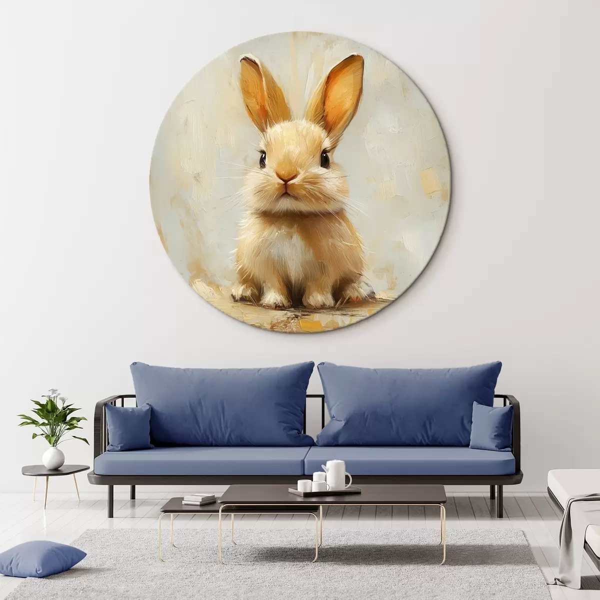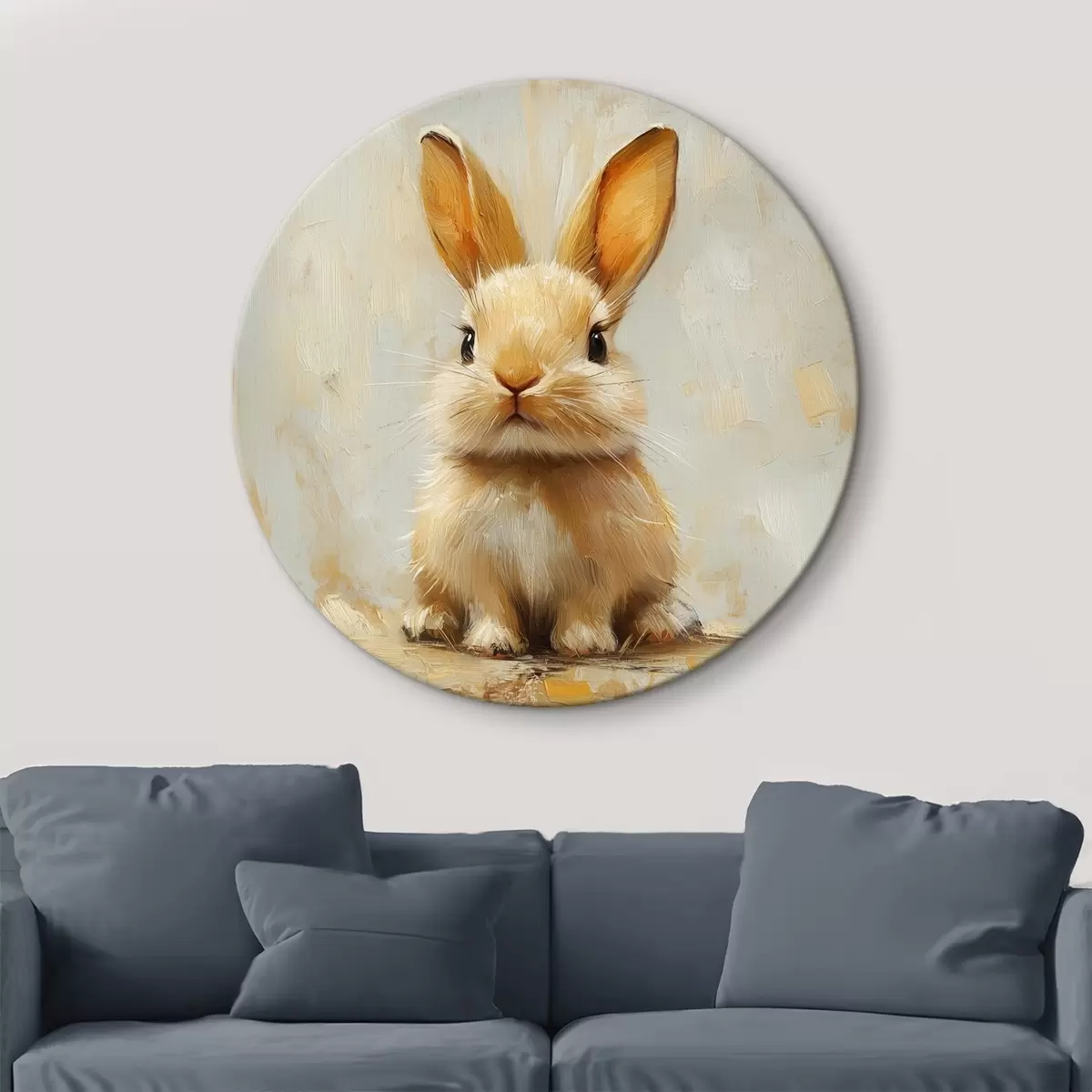 Runde Gemälde Ein beiger Hase auf hellem Hintergrund mit kräftigen Pinselstrichen r41000