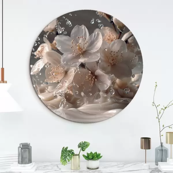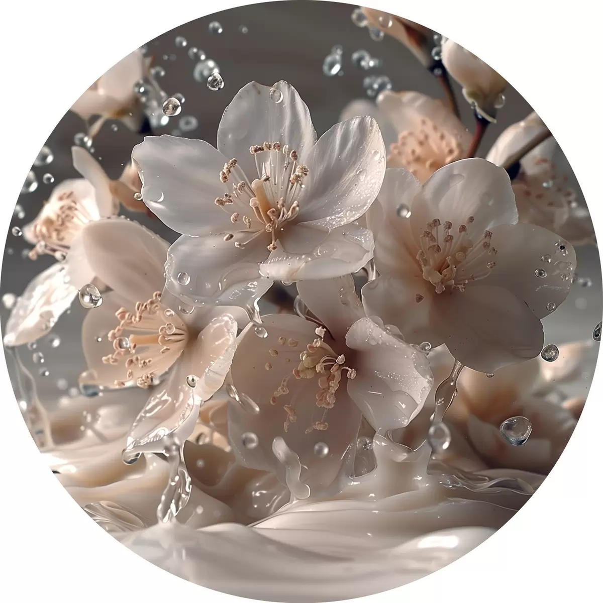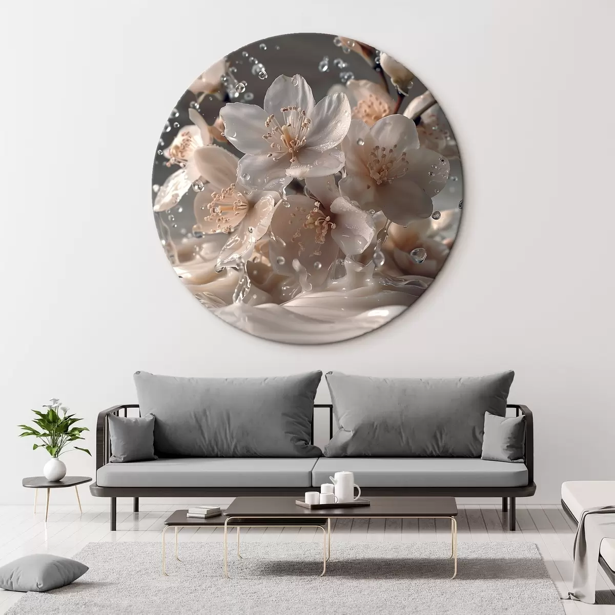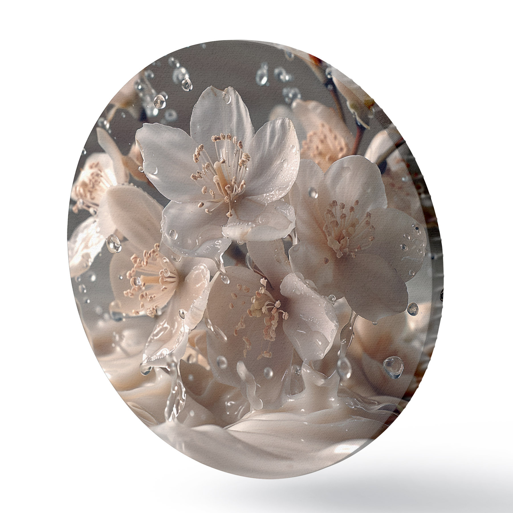 Runde Gemälde Jasminblüten in einem Strudel aus Tropfen r41003