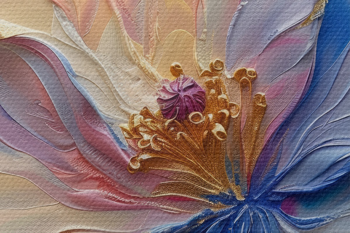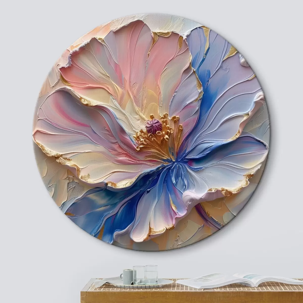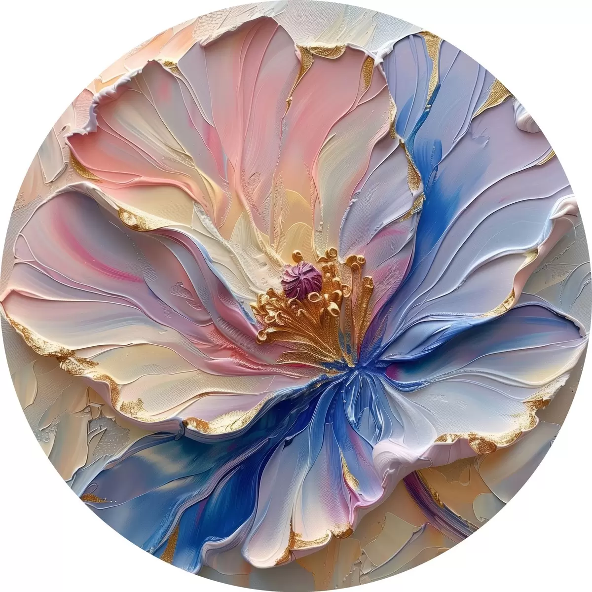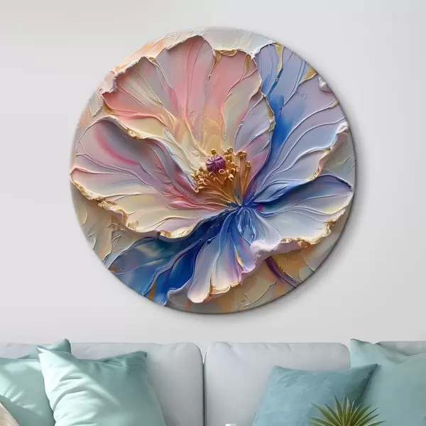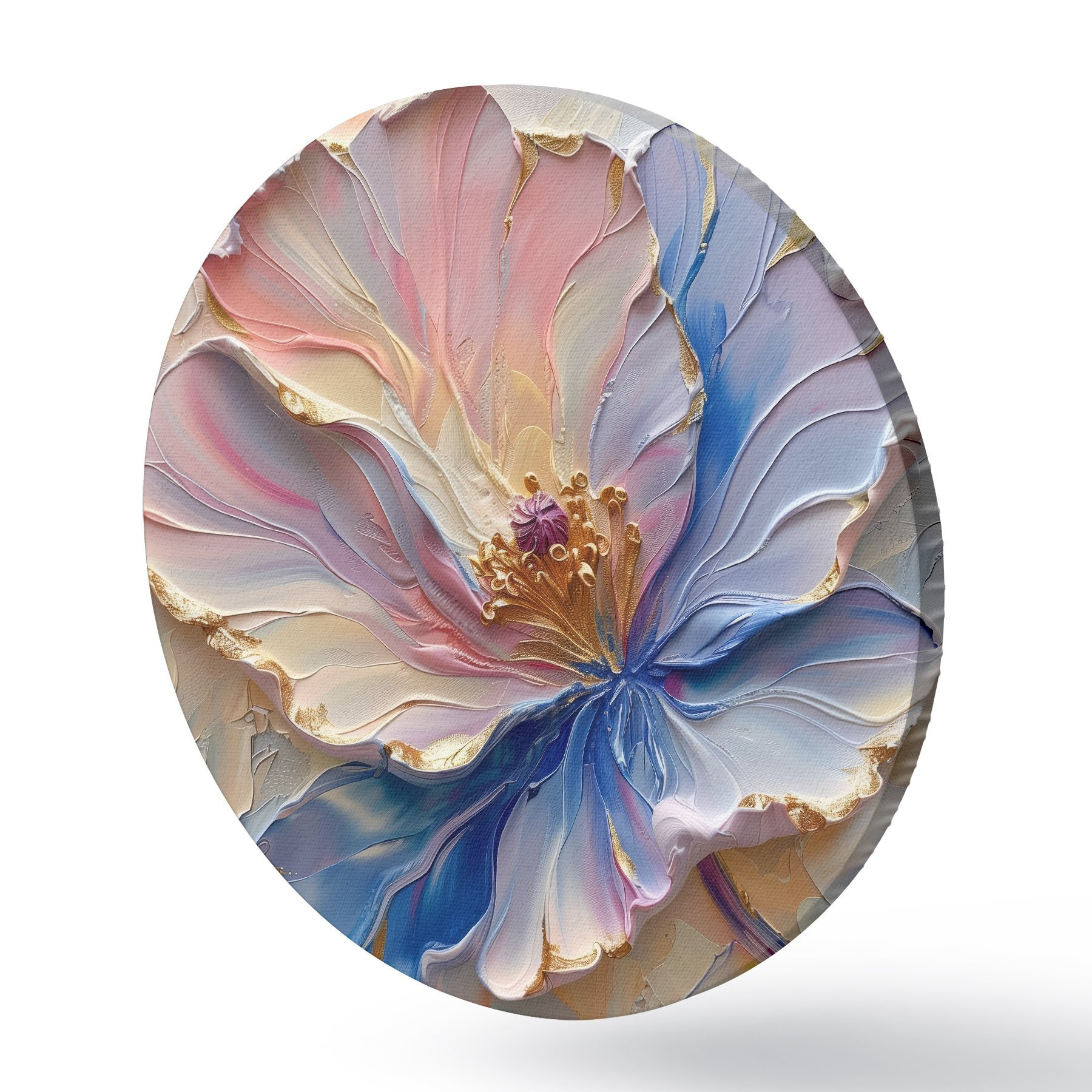 Runde Gemälde Eine große Blüte in zarten Rosa- und Blautönen r41006