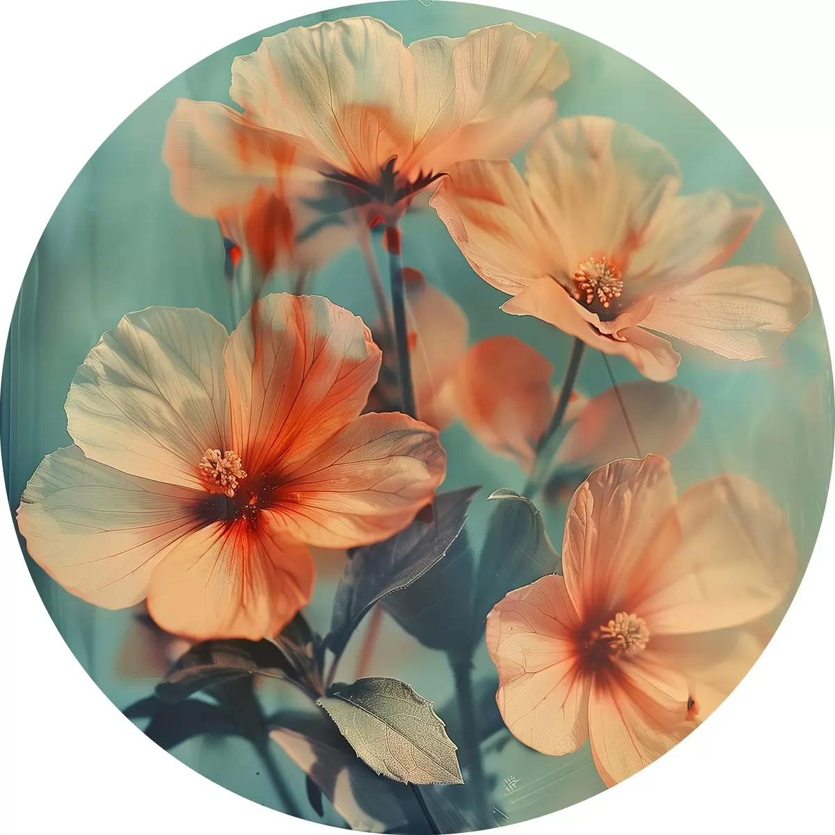 Runde Gemälde Ein Blumenstrauß aus Pfirsichblüten r41007