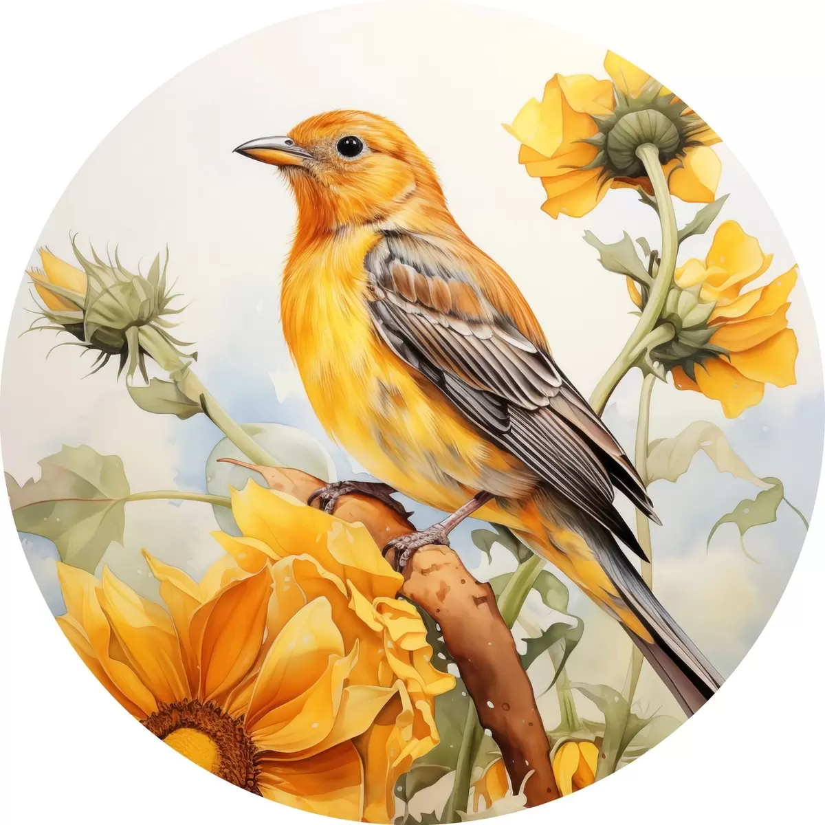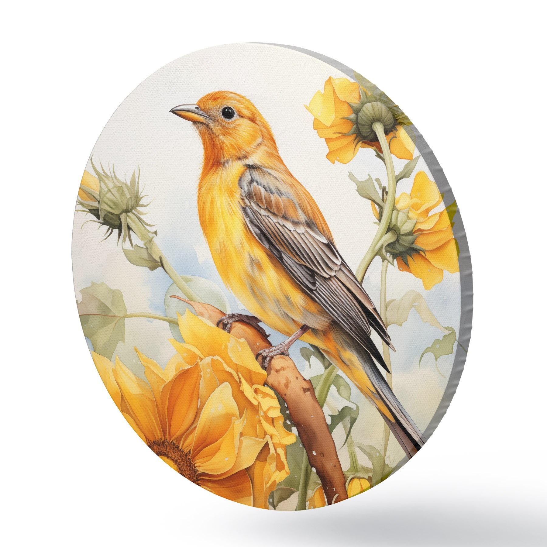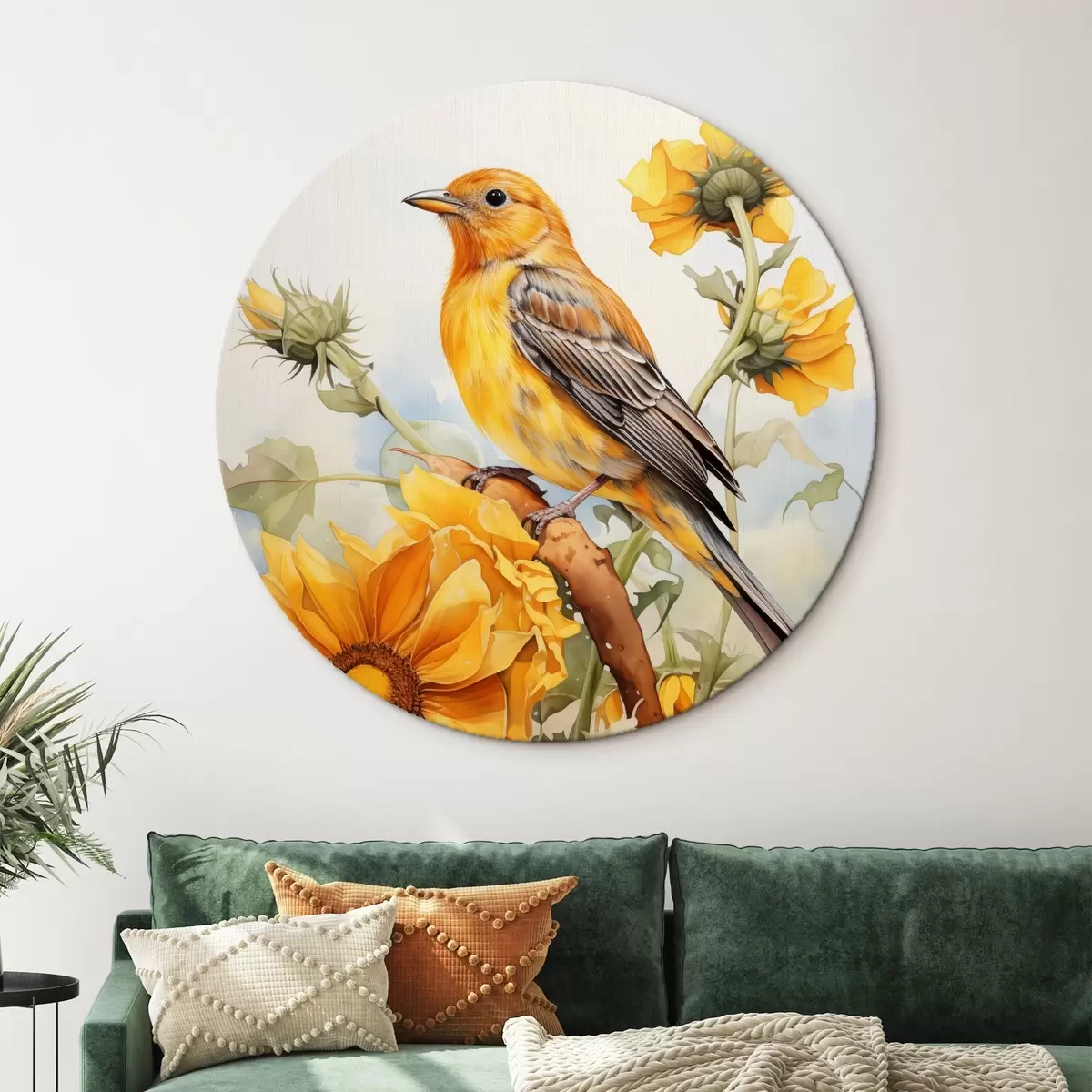 Runde Gemälde Gelber Vogel sitzt auf einer Sonnenblume Aquarell r41015