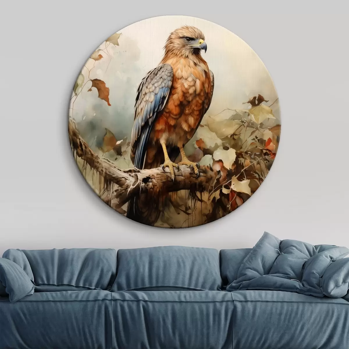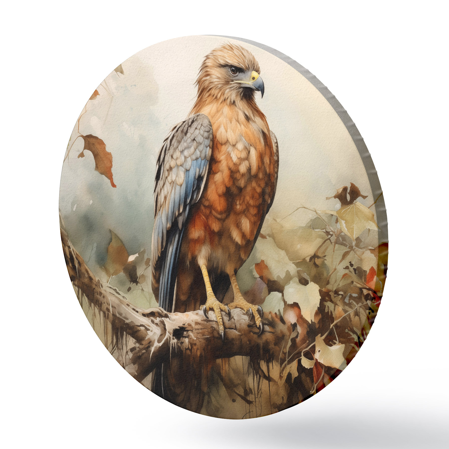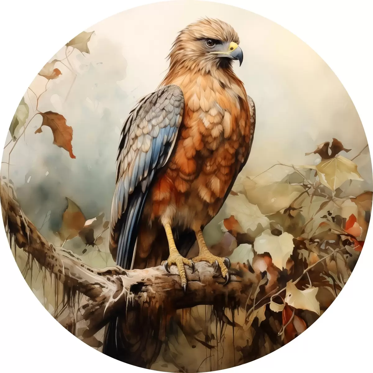 Runde Gemälde Falke auf einem Ast sitzend Aquarell r41021