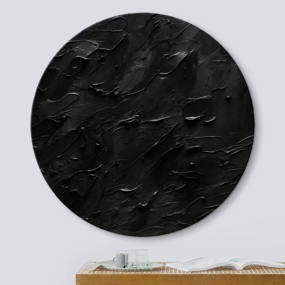 Runde Gemälde Abstraktion mit schwarzen Ölfarben r41024