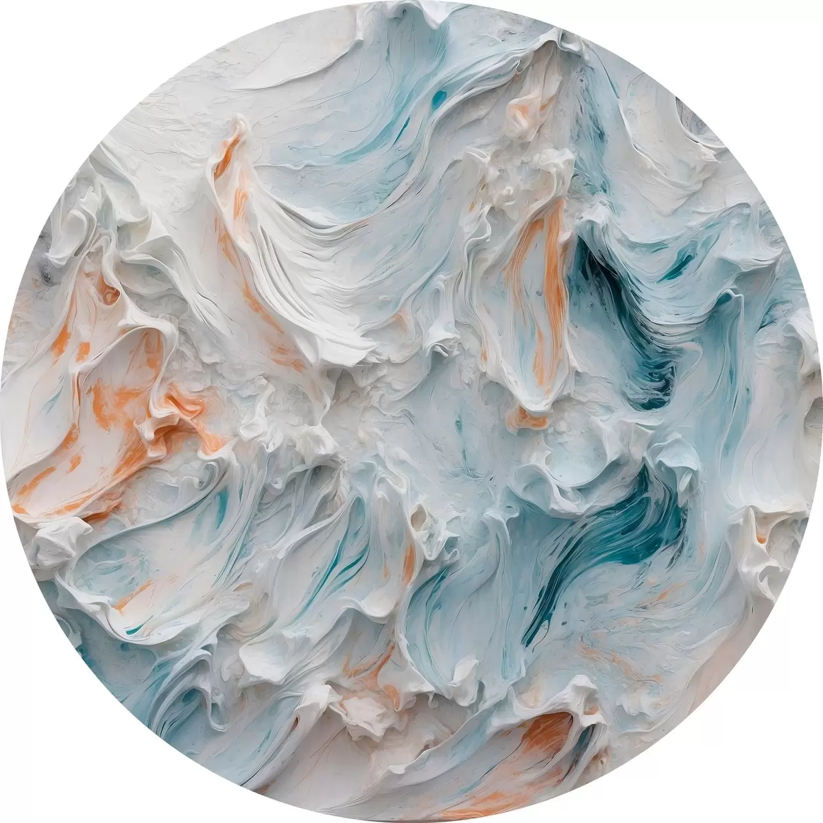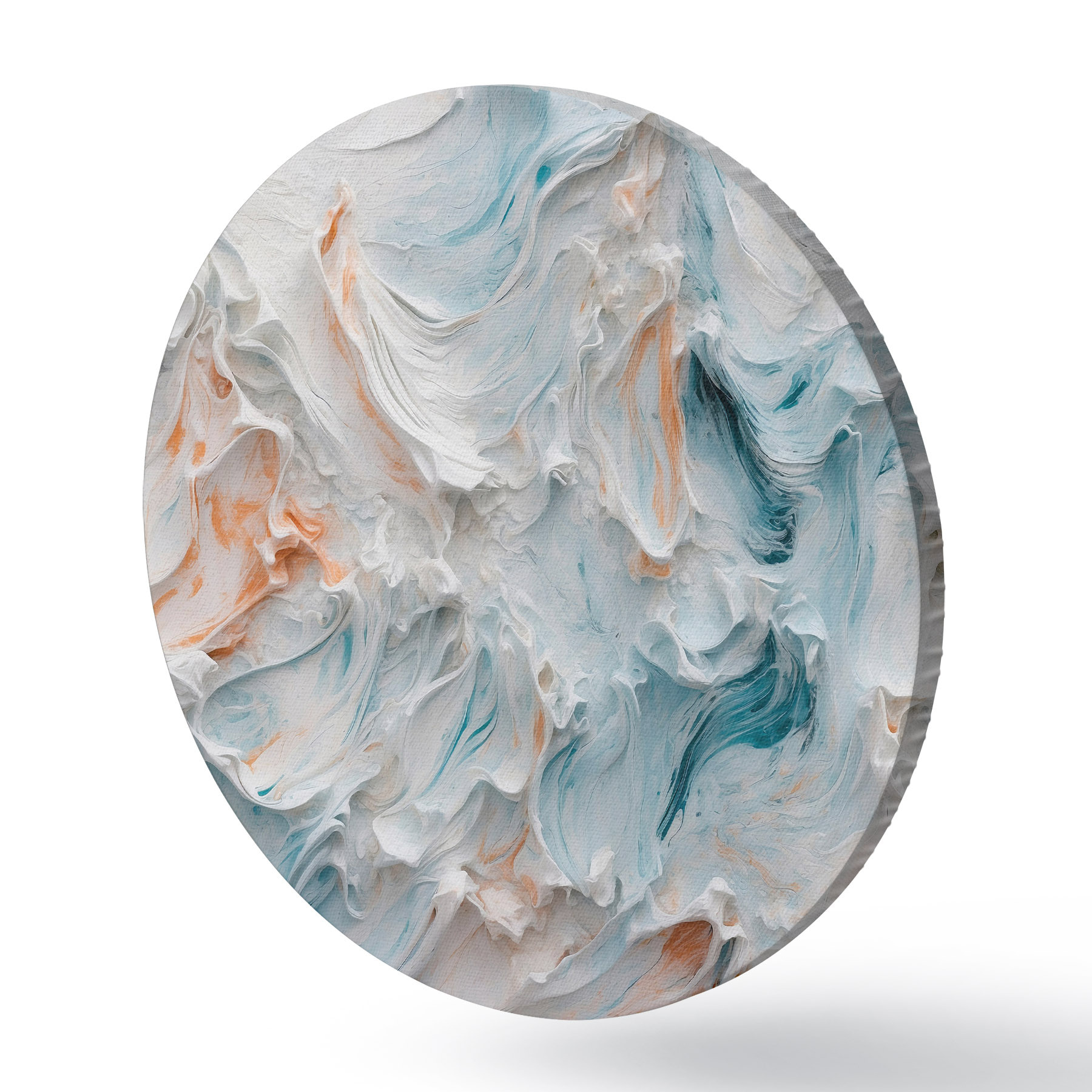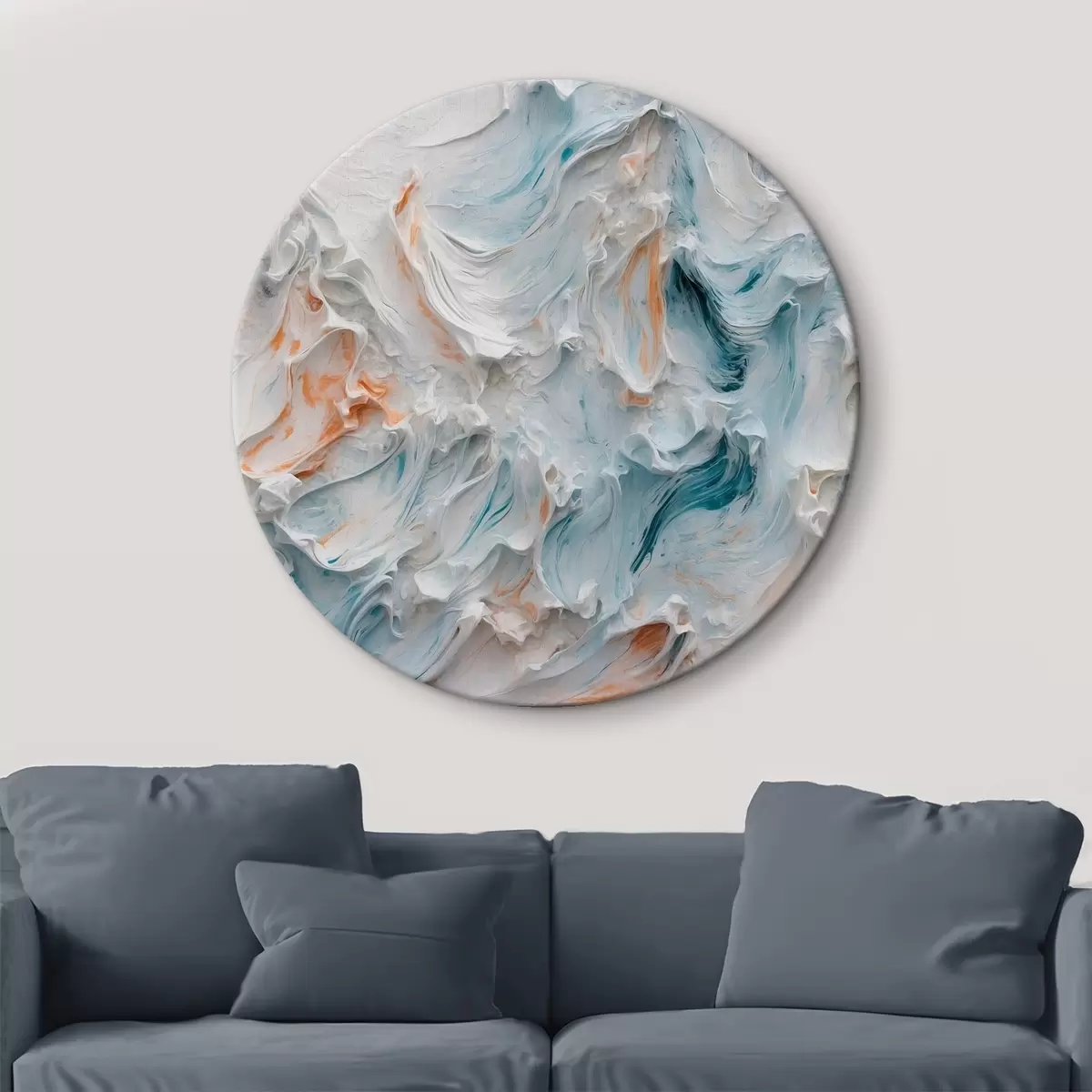 Runde Gemälde Abstraktion in den Farben Weiß, Orange und Blau r41026