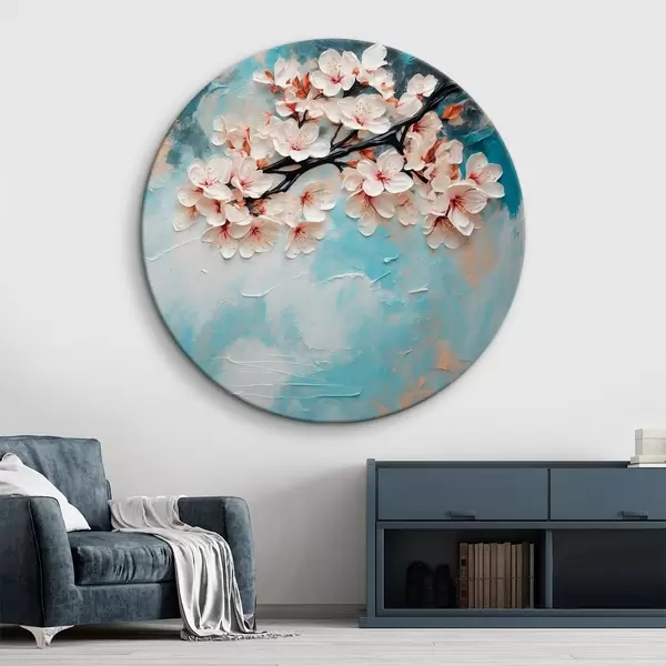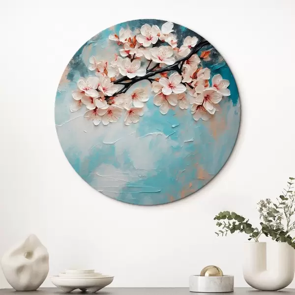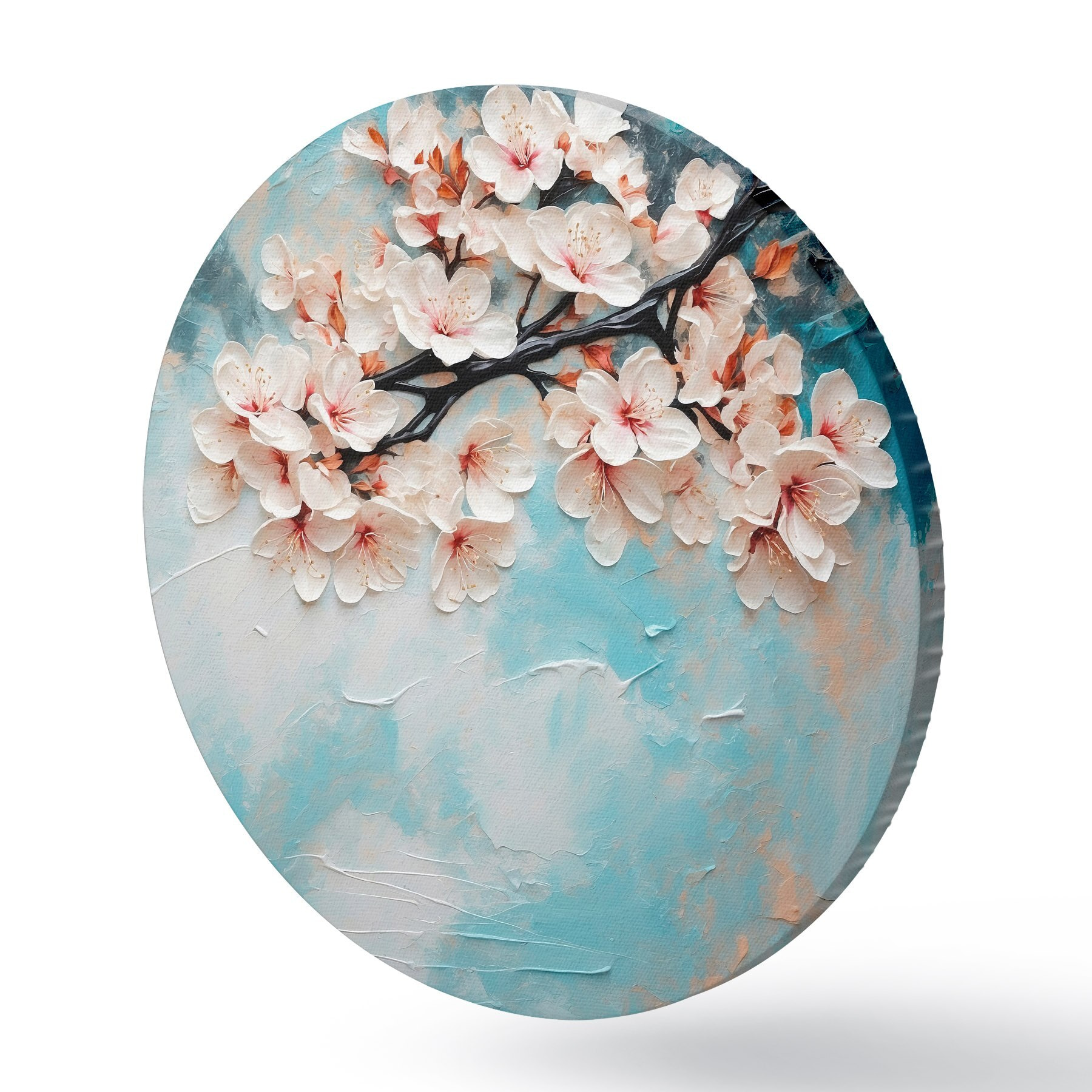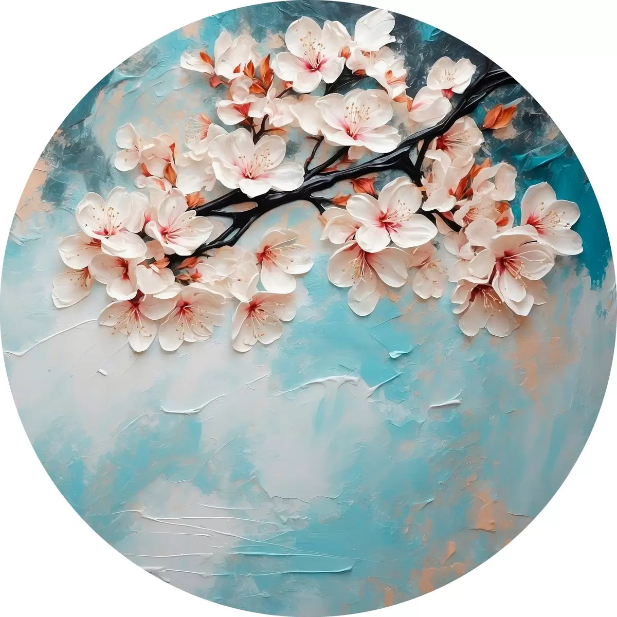 Runde Gemälde Blühender Zweig auf einem abstrakten Öl-Hintergrund r41031