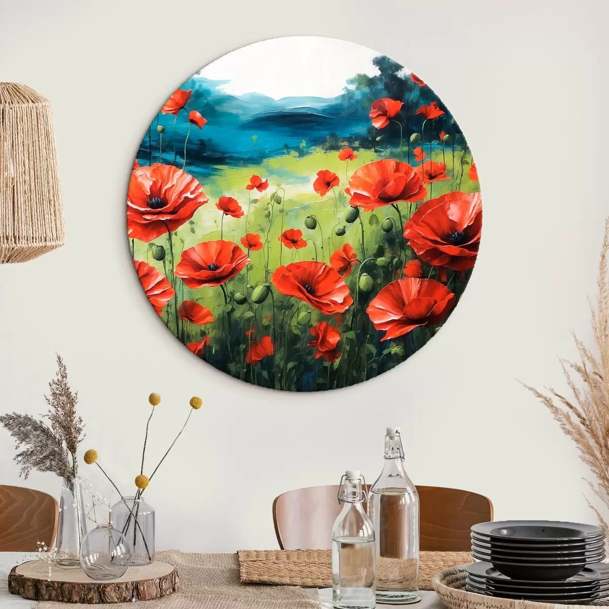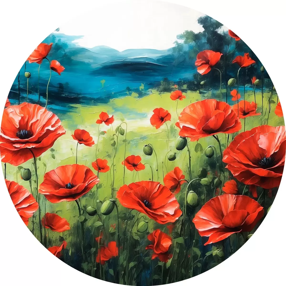 Runde Gemälde Mohnblumen auf einem Acryl-Hintergrund r41035