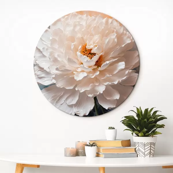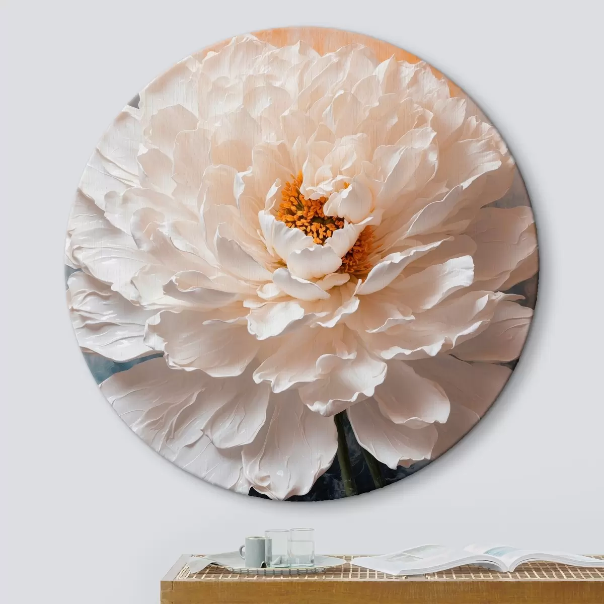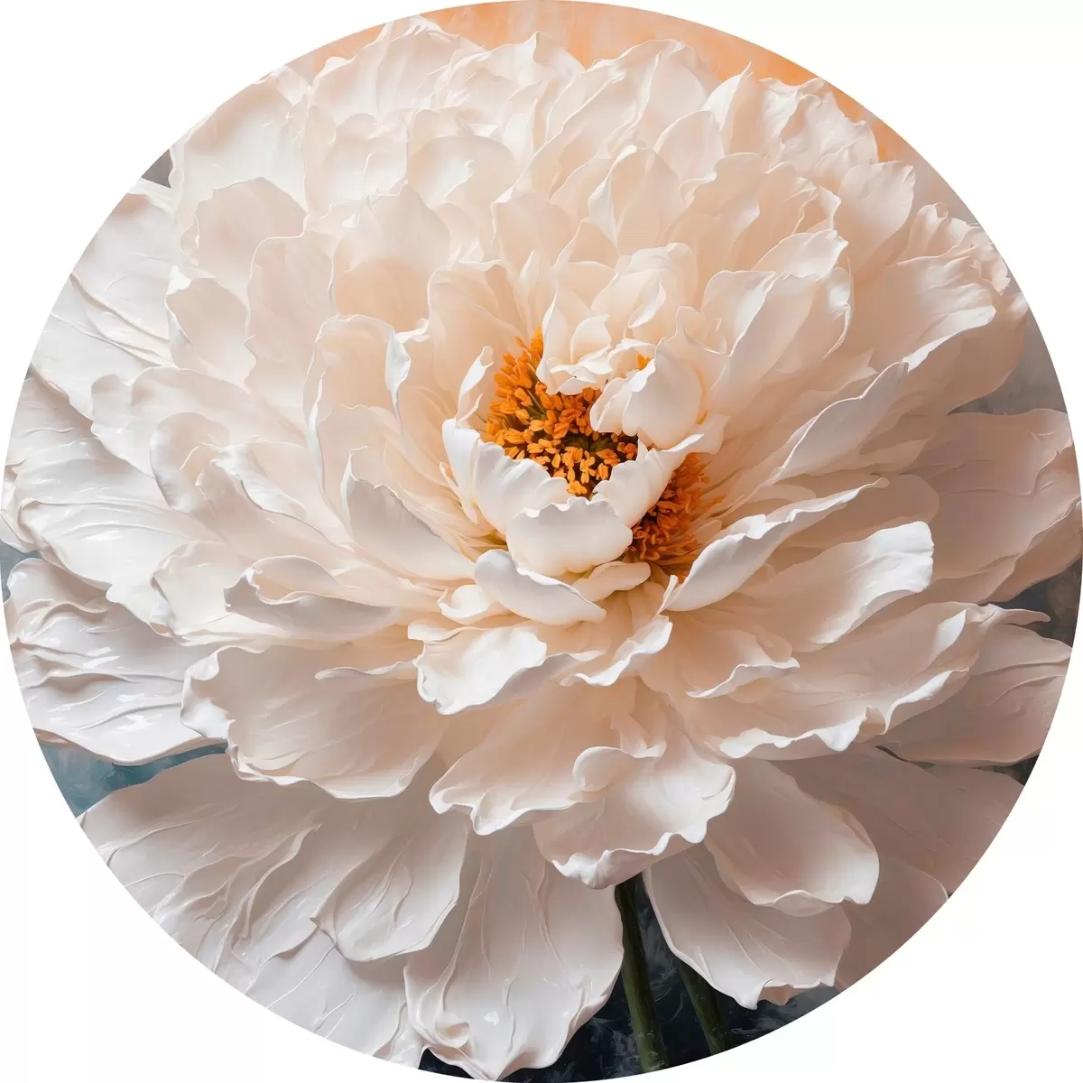 Runde Gemälde Weiße Blume auf orange-blauem Hintergrund r41038