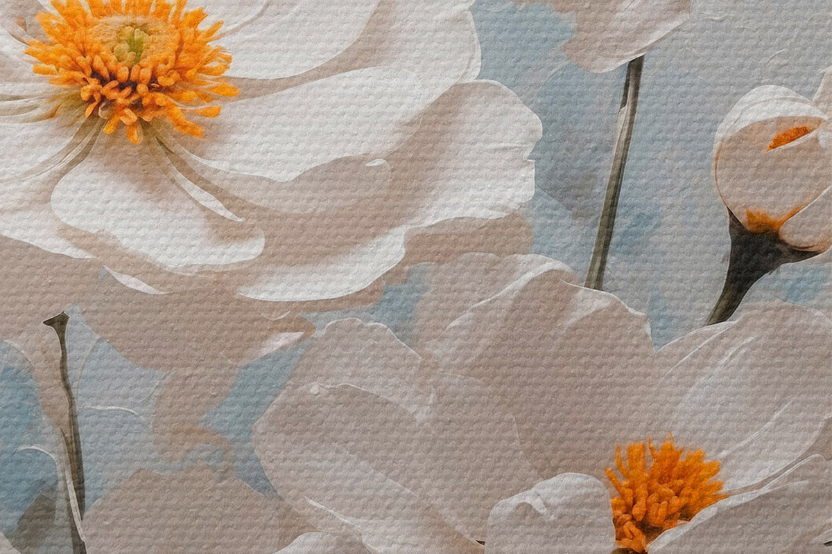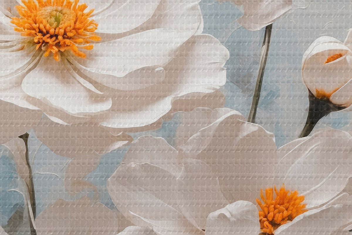 Bild Weiße Blumen auf einem blauen und weißen Öl-Hintergrund Nr r41041