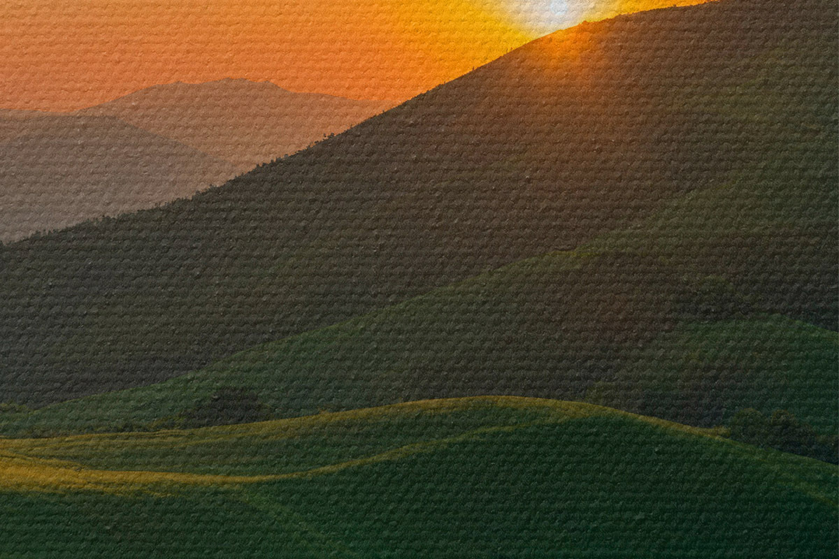 Drei Materialtypen stehen zur Verfügung: Economic Canvas - ein dichtes und haltbares Material für den Digitaldruck, identisch mit Malerleinwand, wasserfeste Oberfläche, realistische Wiedergabe von Details, mittelkörniges Material. Premium Canvas - die Textur ähnelt der einer Malerleinwand (verwobene kleine Fäden). Weiche, detaillierte Wiedergabe des Bildes auf einer matten Oberfläche. Eco-Premium - hochwertiges Gewebe aus 100% Baumwolle. Dank der natürlichen Baumwollfasern ist das Material langlebig und verschleißfest. Hervorragende Farbwiedergabe und Detailtreue.