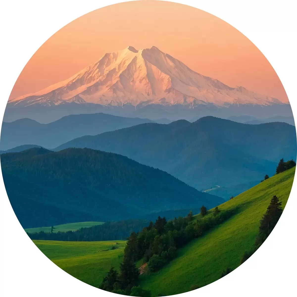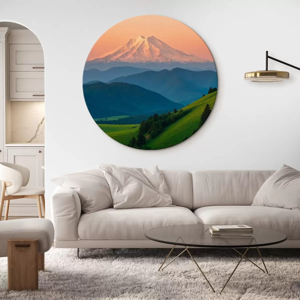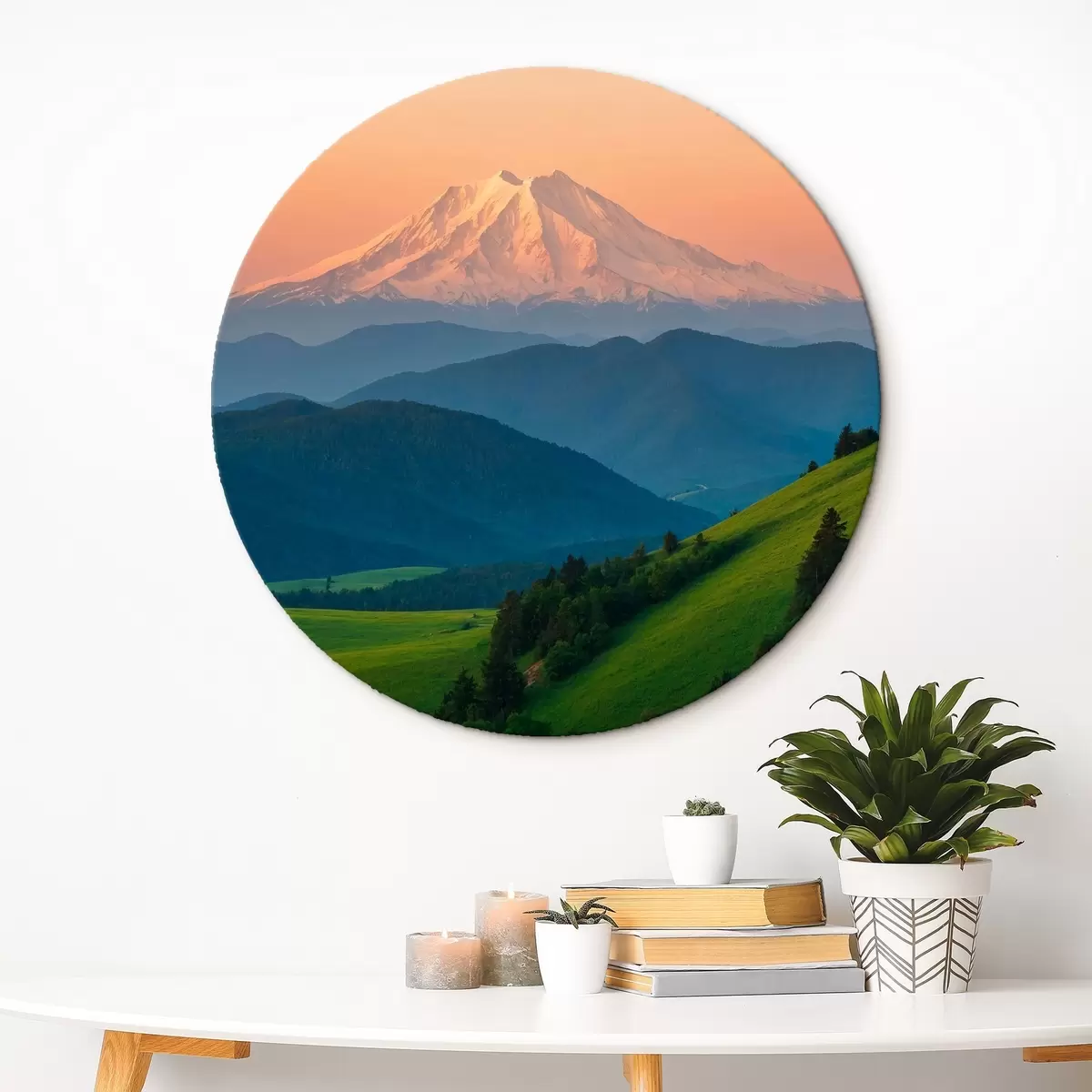 Runde Gemälde Blick auf einen ruhigen, schneebedeckten Vulkan r41046