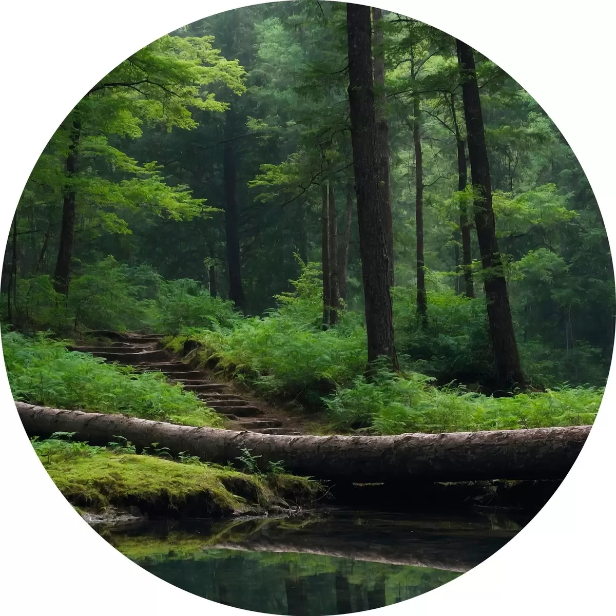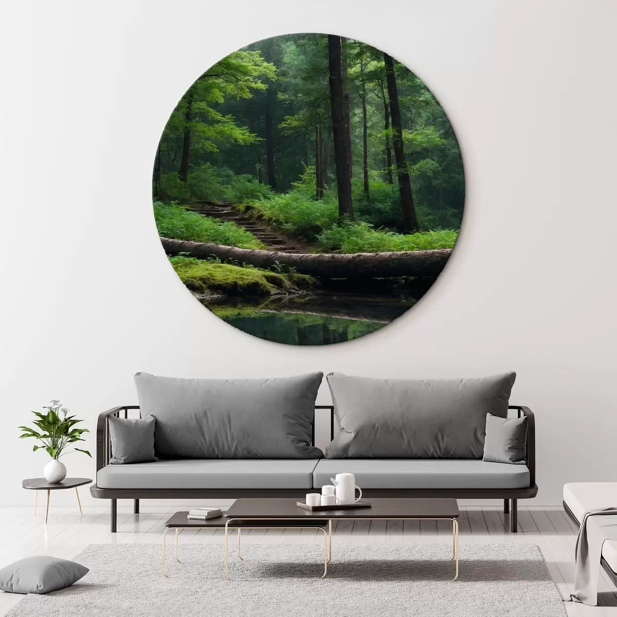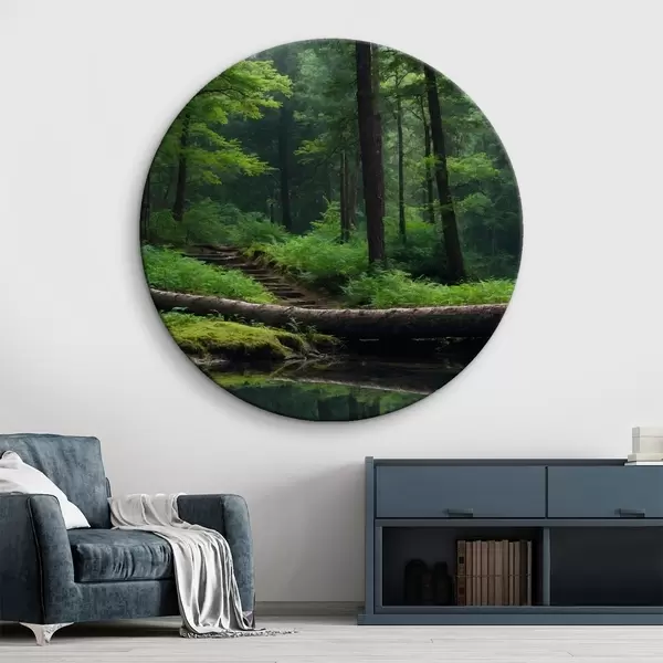Runde Gemälde Umgefallener Baum im Wald r41054