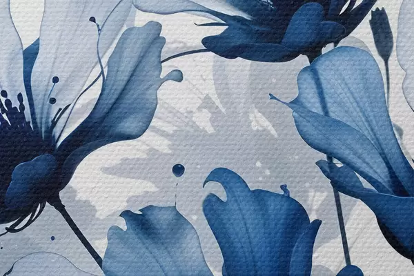 Bild Abstrakte große blaue und weiße Blumen mit weichen verschwommenen Blütenblätter auf einem weißen Hintergrund Nr r41082