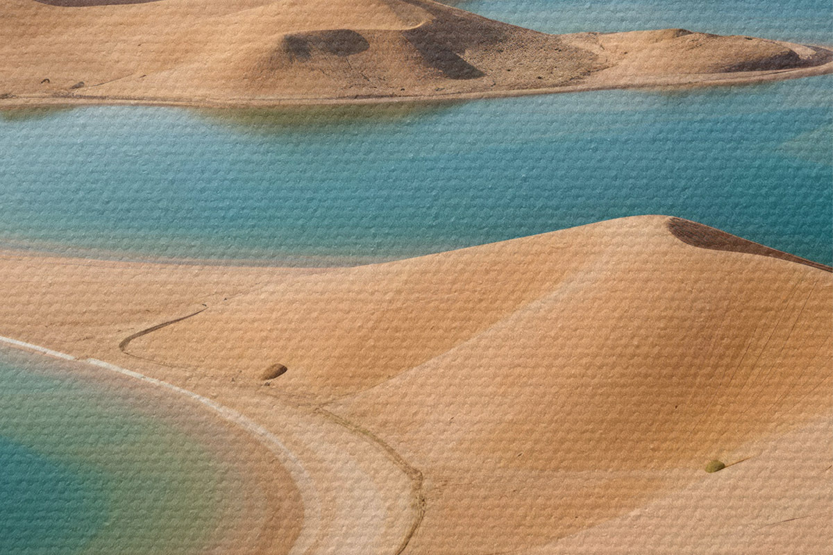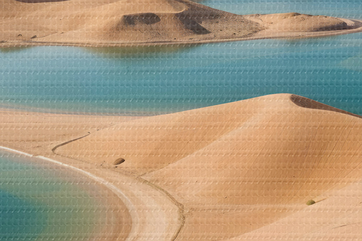 Bild Eine weite Wüstenlandschaft mit sanften Dünen und türkisfarbenen Seen, umgeben von schroffen Bergen Nr r41087