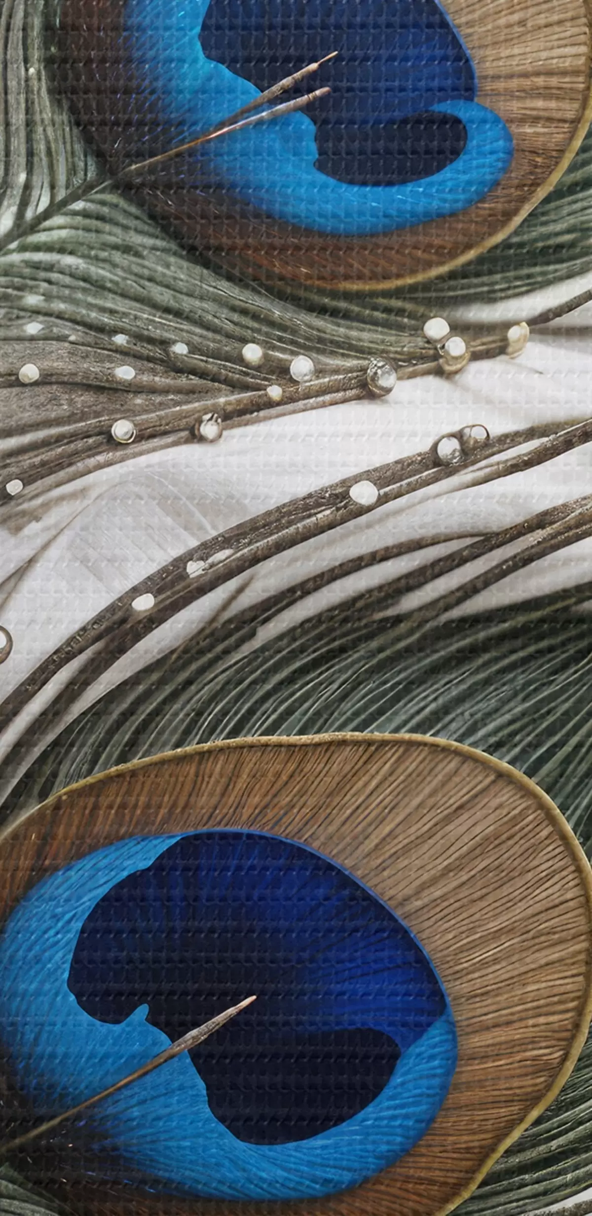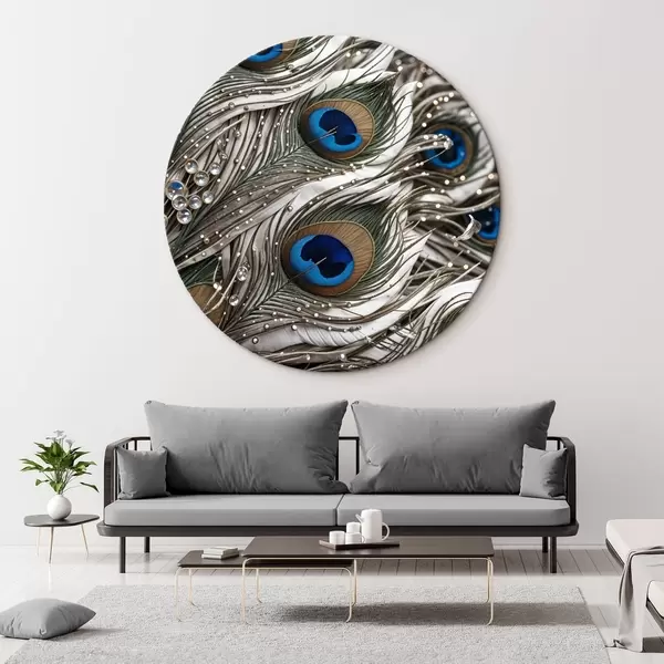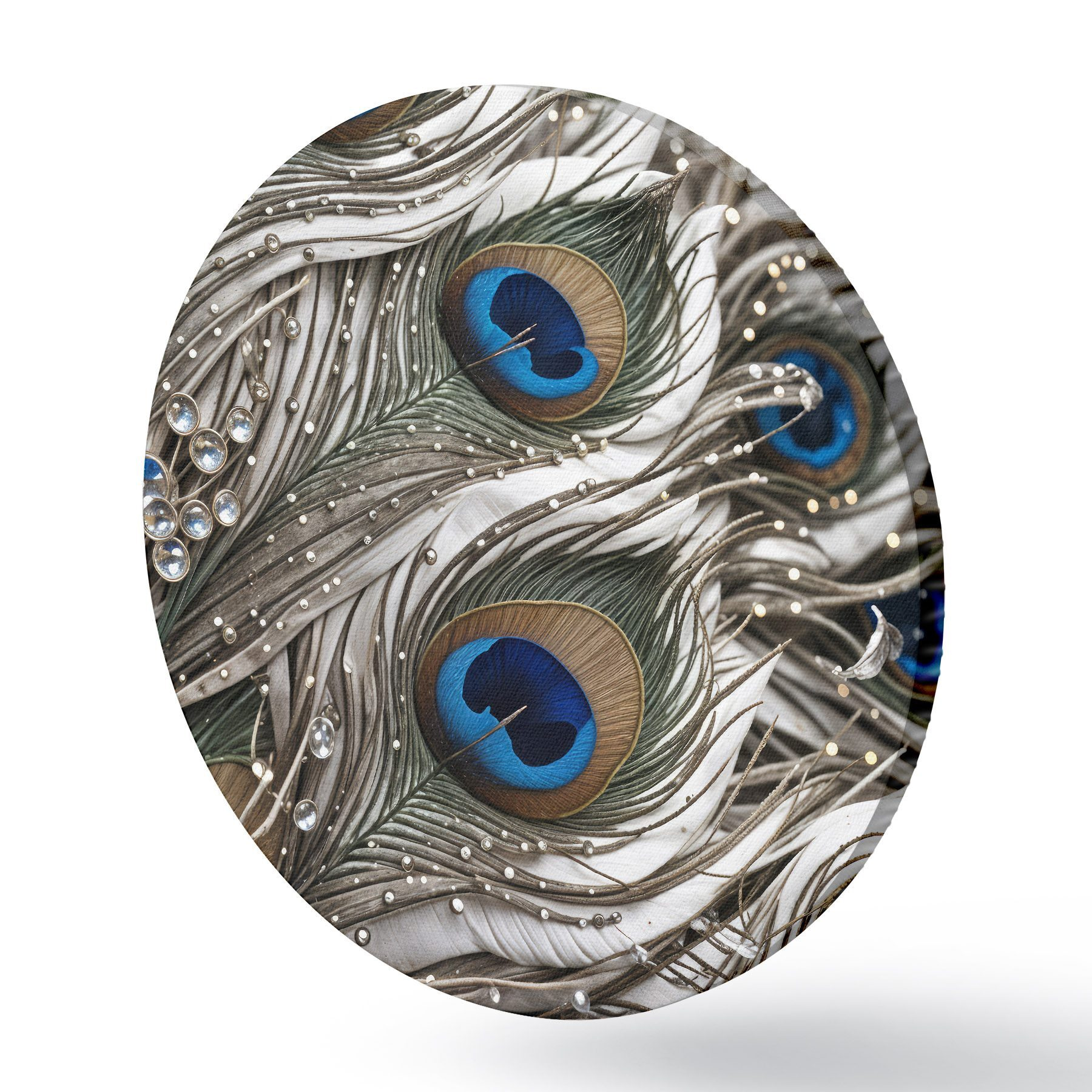 Runde Gemälde Lebendige Pfauenfedern mit verschlungenen Mustern und auffallend blauen Mustern r41103