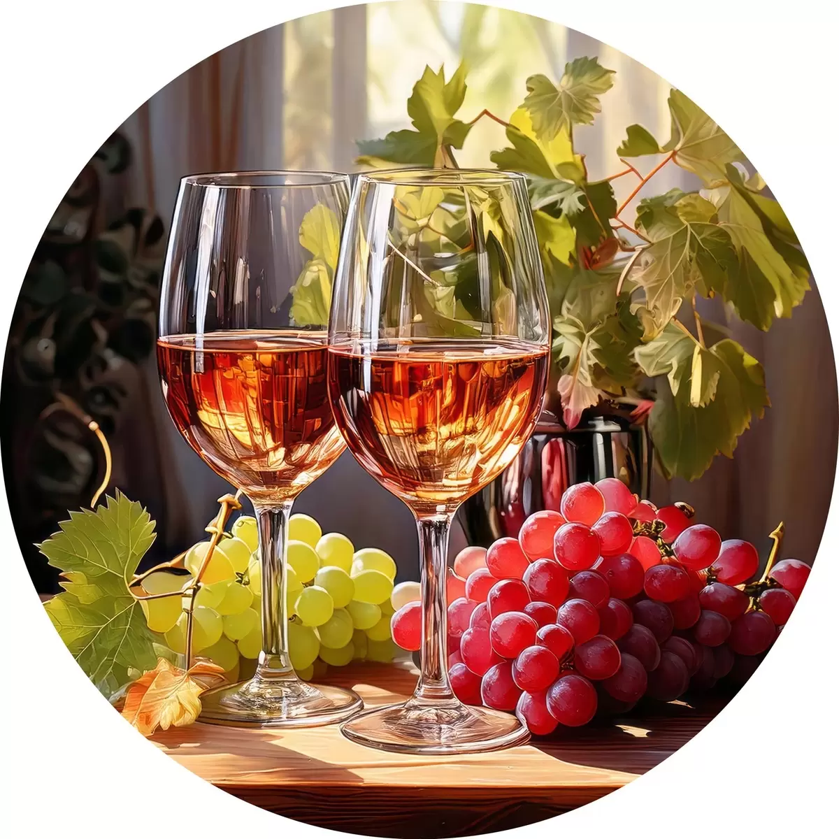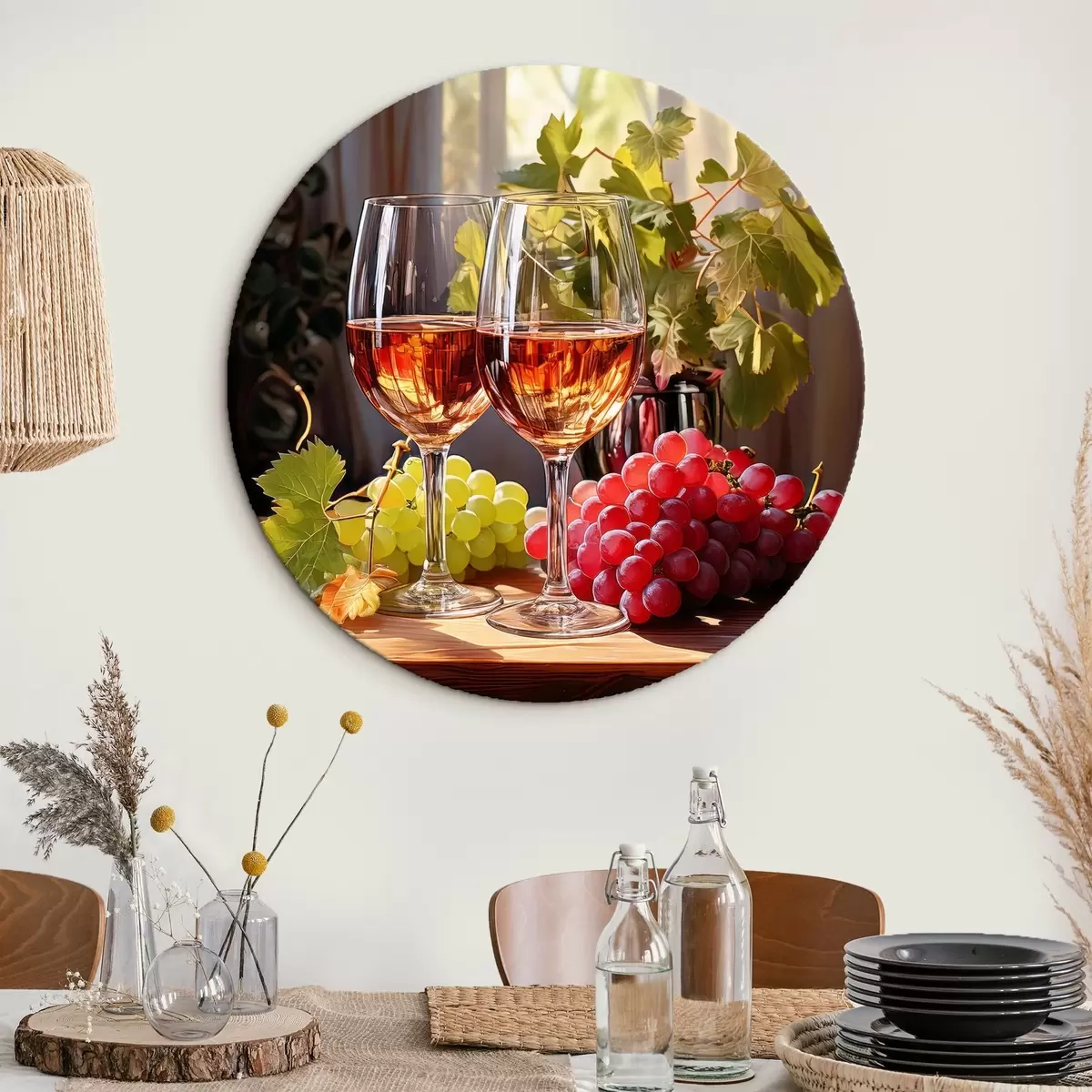 Runde Gemälde gläser mit Wein und Trauben, Stillleben r41105