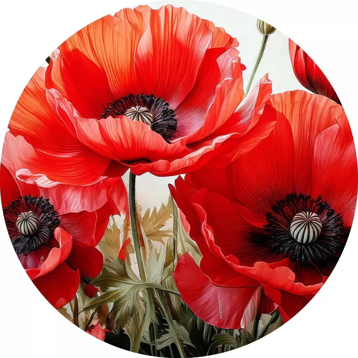 Runde Gemälde große rote Mohnblumen r41107