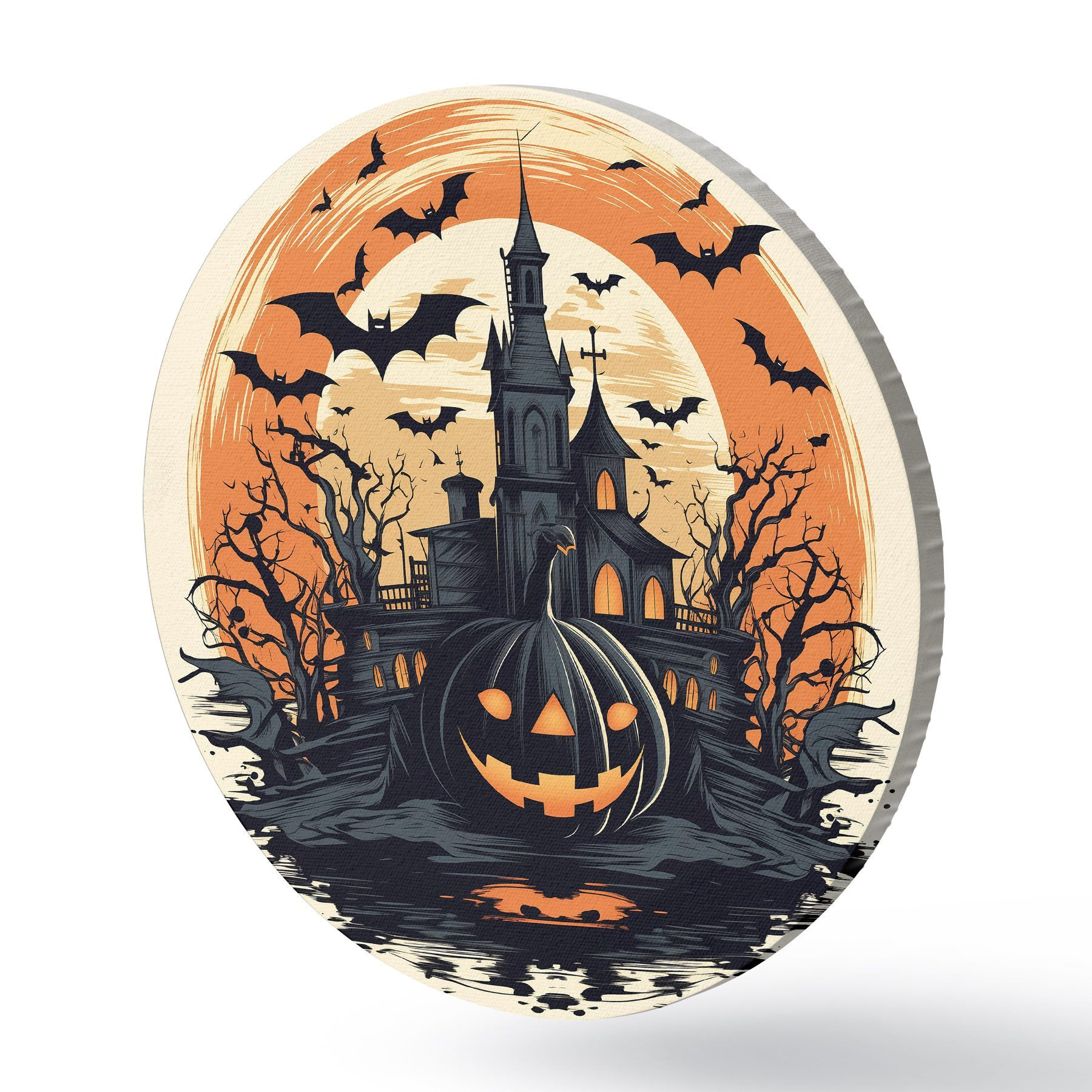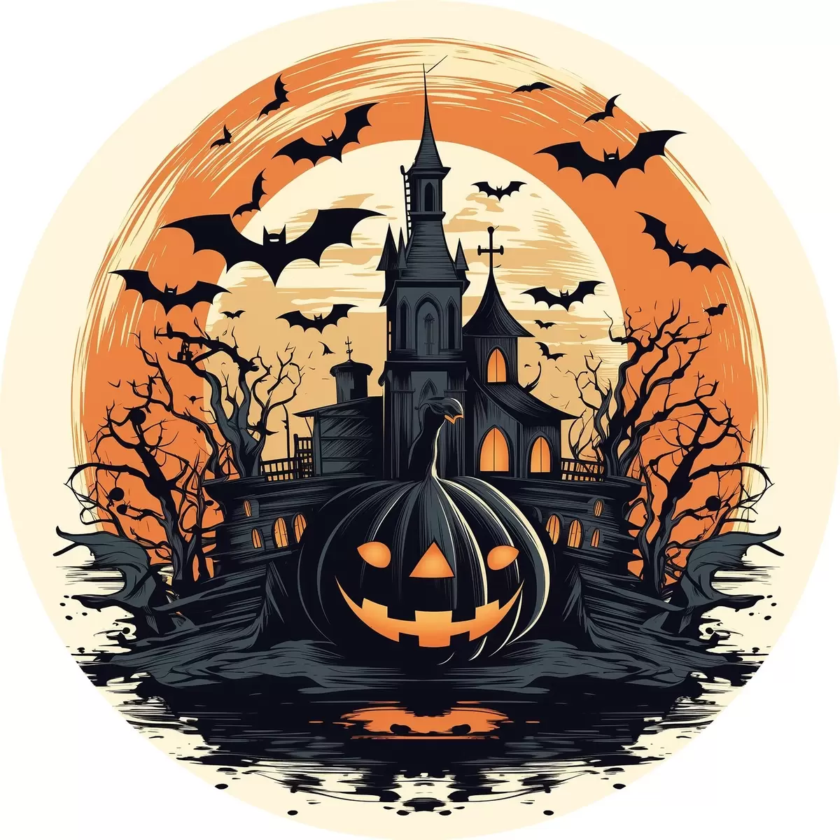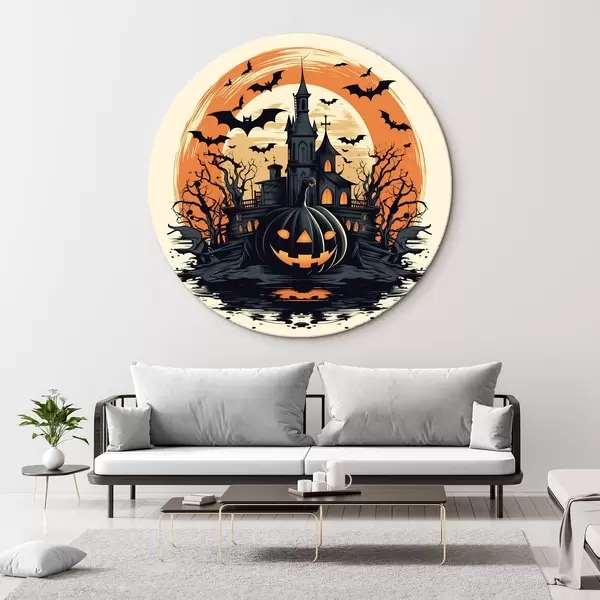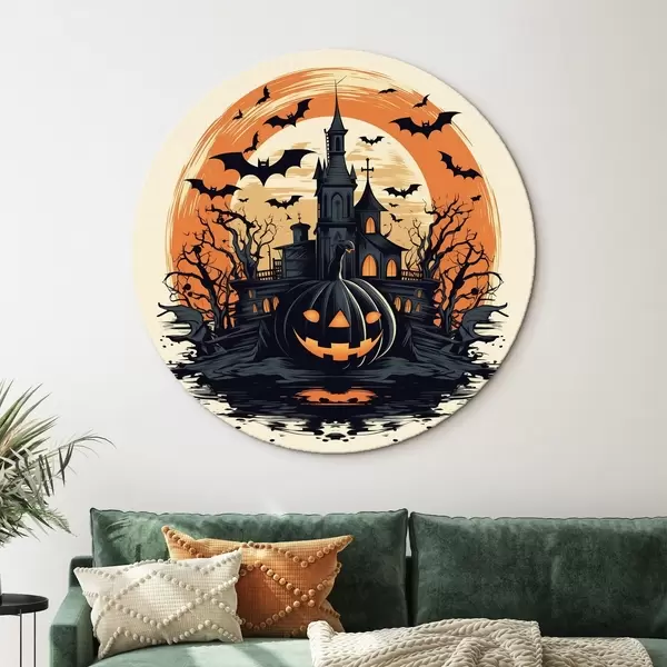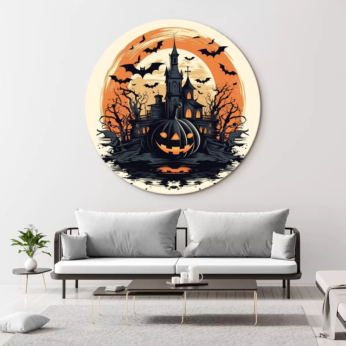 Runde Gemälde Schloss, Fledermäuse und Kürbisse r41137