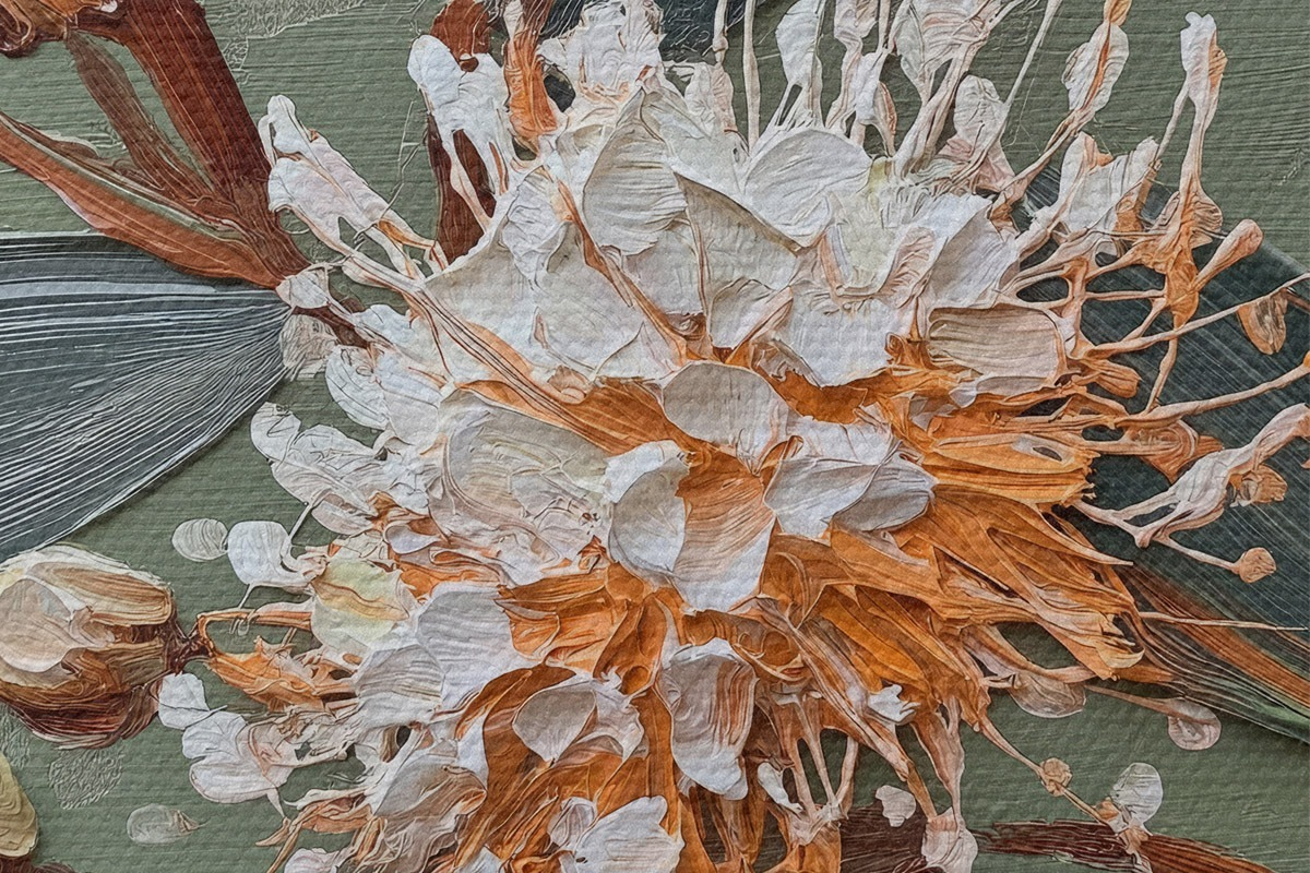 Das Bild kann vorsichtig mit einem trockenen, weichen Tuch oder Schwamm abgewischt werden; es wird nicht empfohlen, feuchte Produkte zu verwenden. Die Verwendung eines feuchten Schwamms ist nur zulässig, wenn das Bild lackiert wurde.