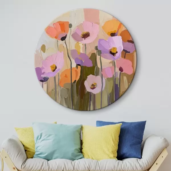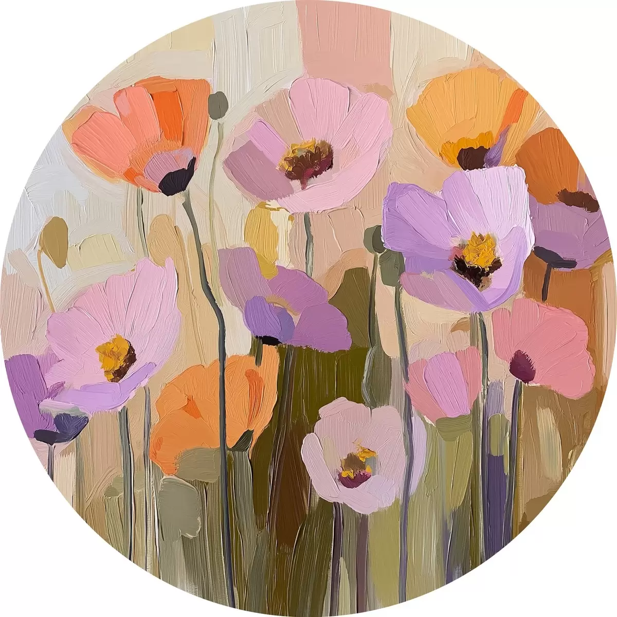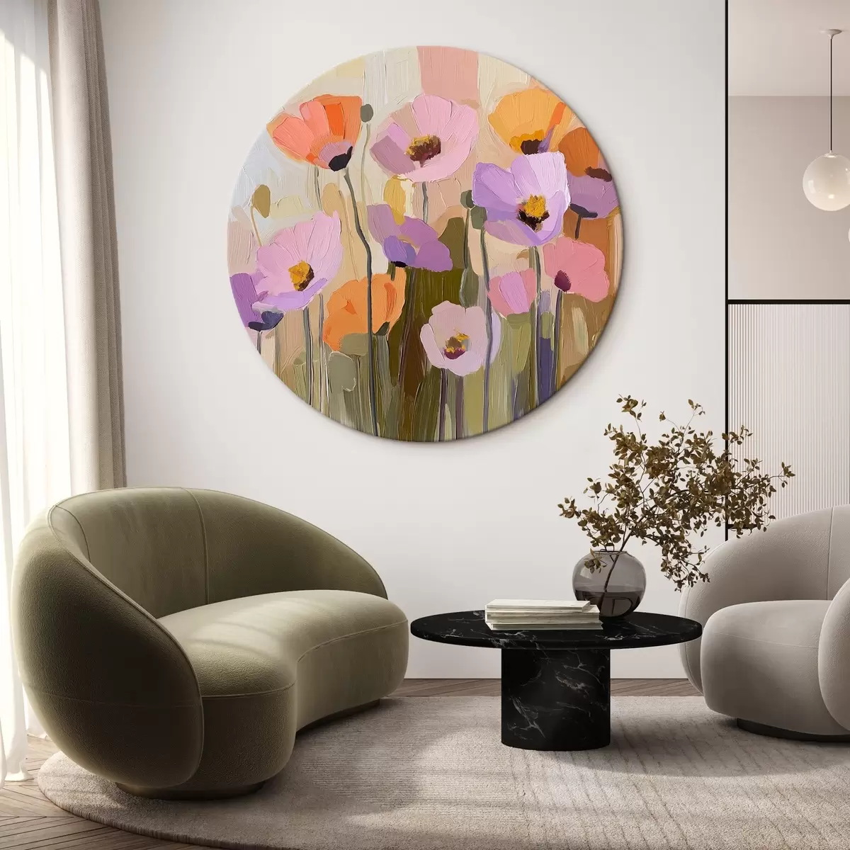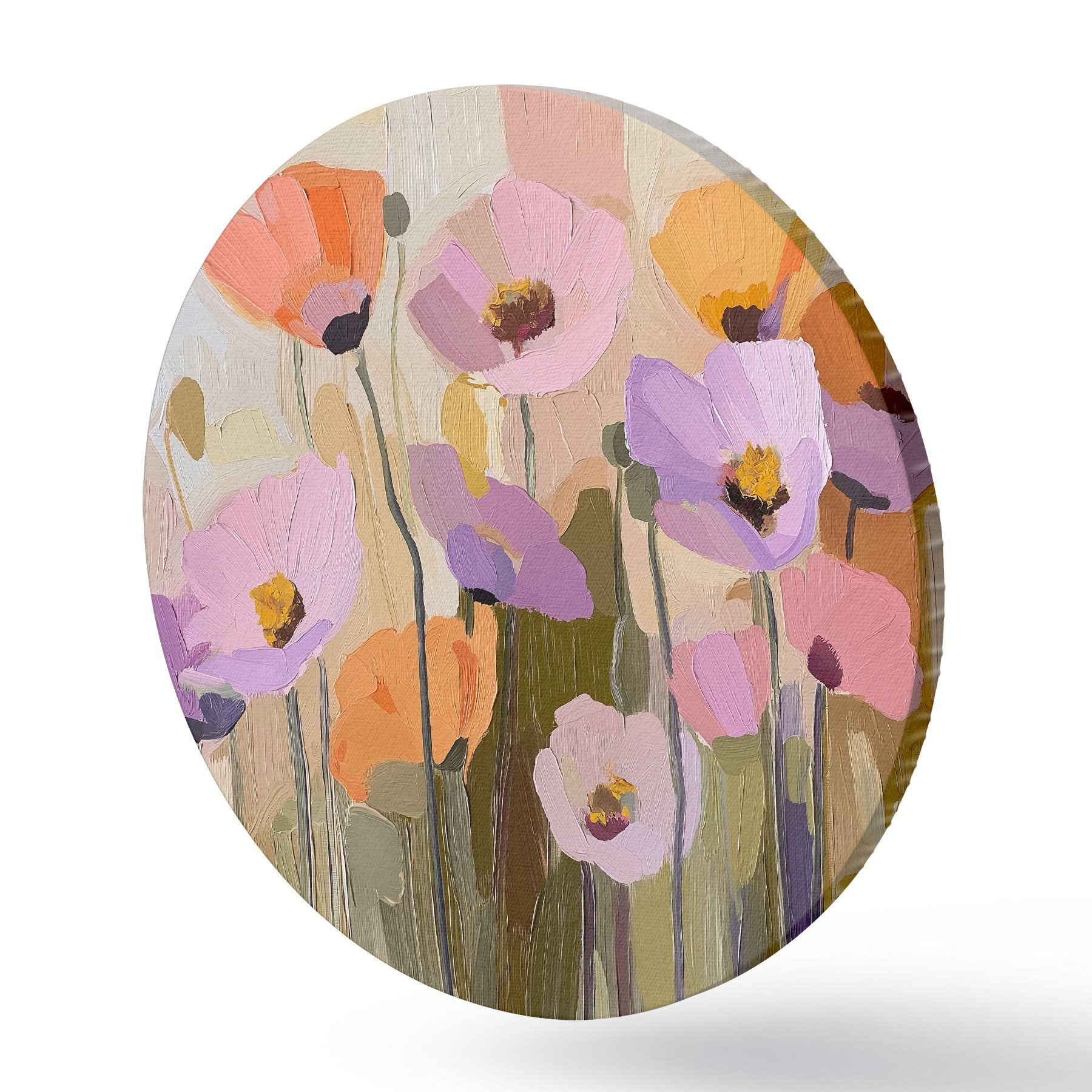 Runde Gemälde Ein Acrylgemälde, das Herbstmohnblumen darstellt r41158