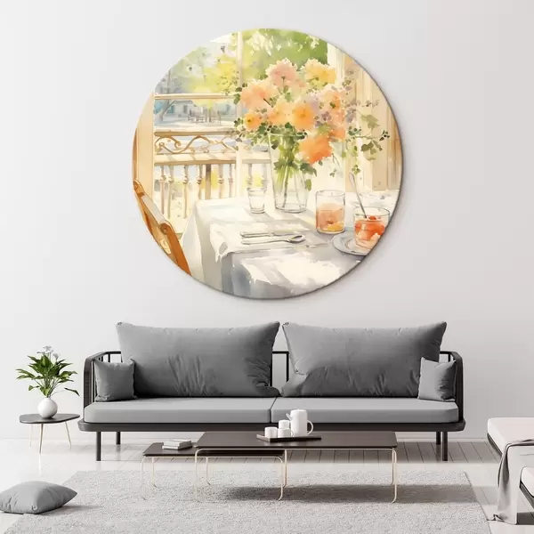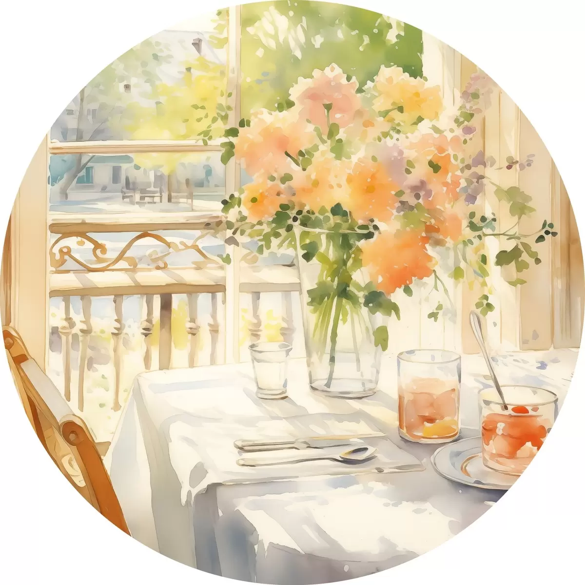 Runde Gemälde Romantisches Abendessen, Aquarell, Boho-Stil, Blumen, Natur r41165