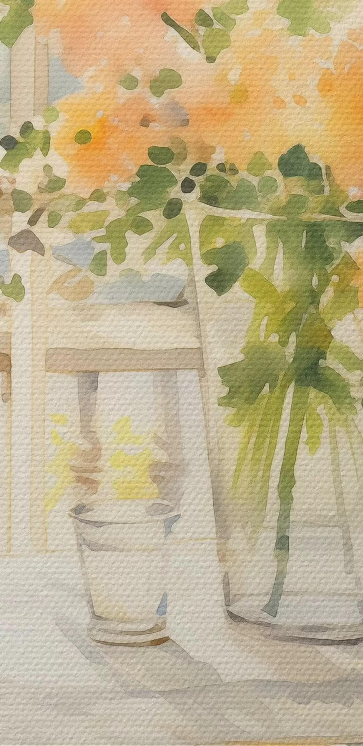 Bild Romantisches Abendessen, Aquarell, Boho-Stil, Blumen, Natur Nr r41165