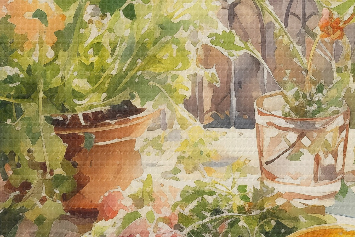Bild Aquarell Abendessen, Stadtansicht, Blumen, Natur, grüner Salat Nr r41166