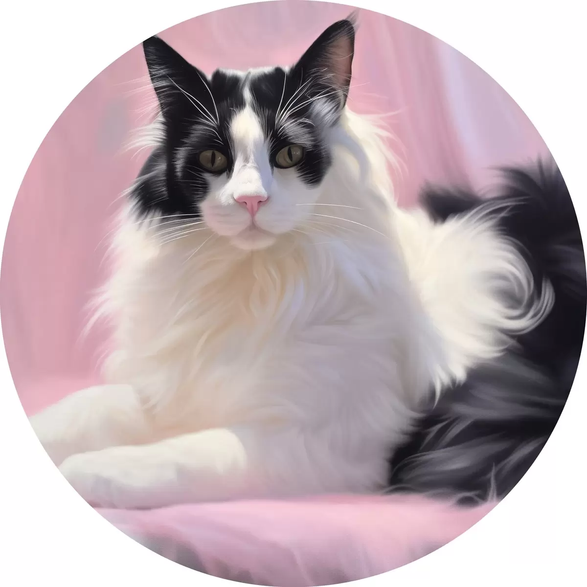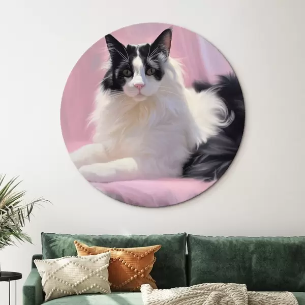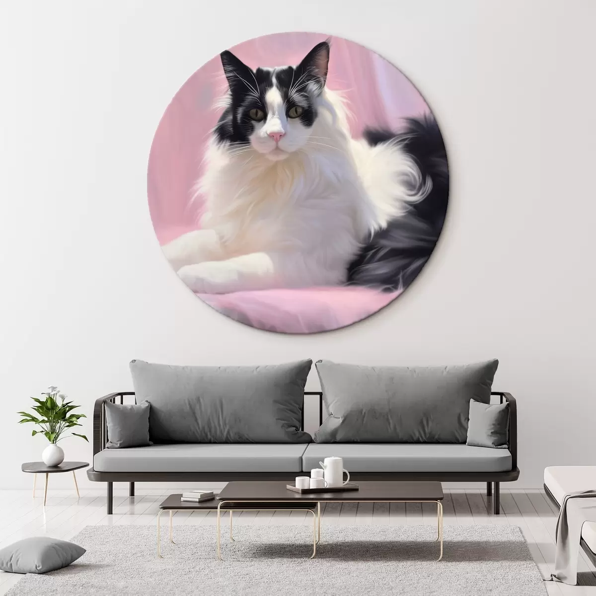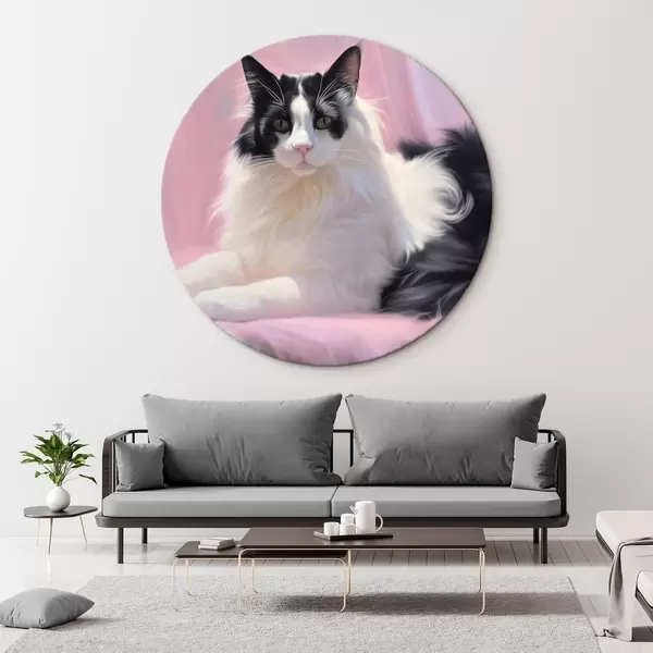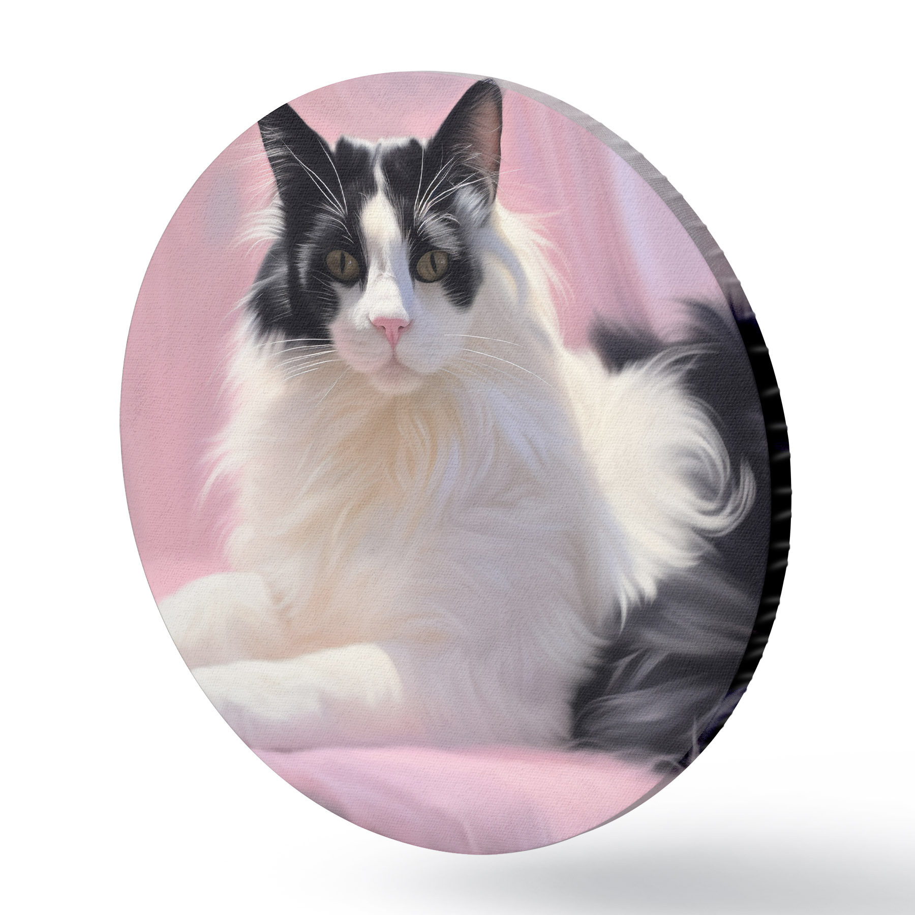 Runde Gemälde Katze, sanfter Hintergrund, weiße und schwarze Katze r41182