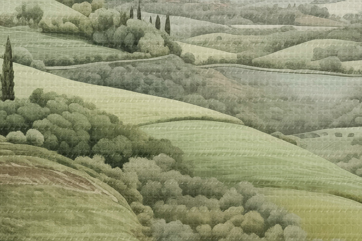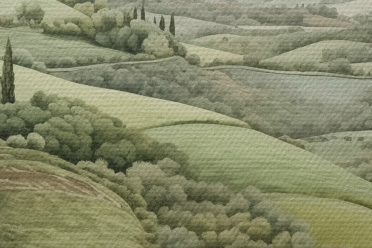 Bild Aquarelllandschaften mit Bäumen und Bergen, Toskana, Sommer Nr r41222