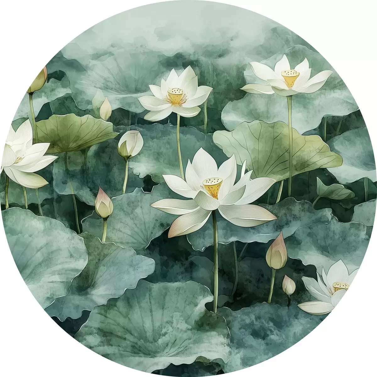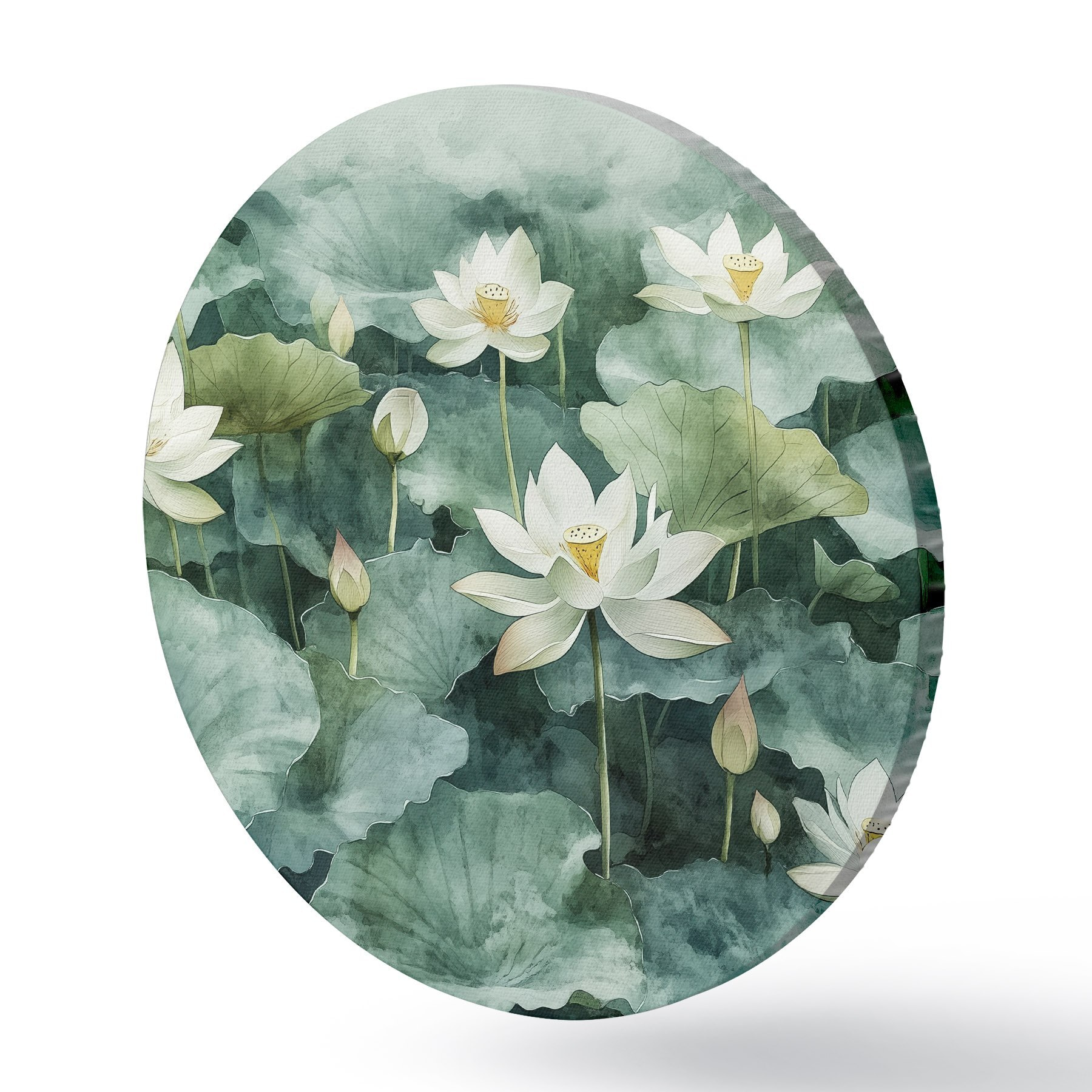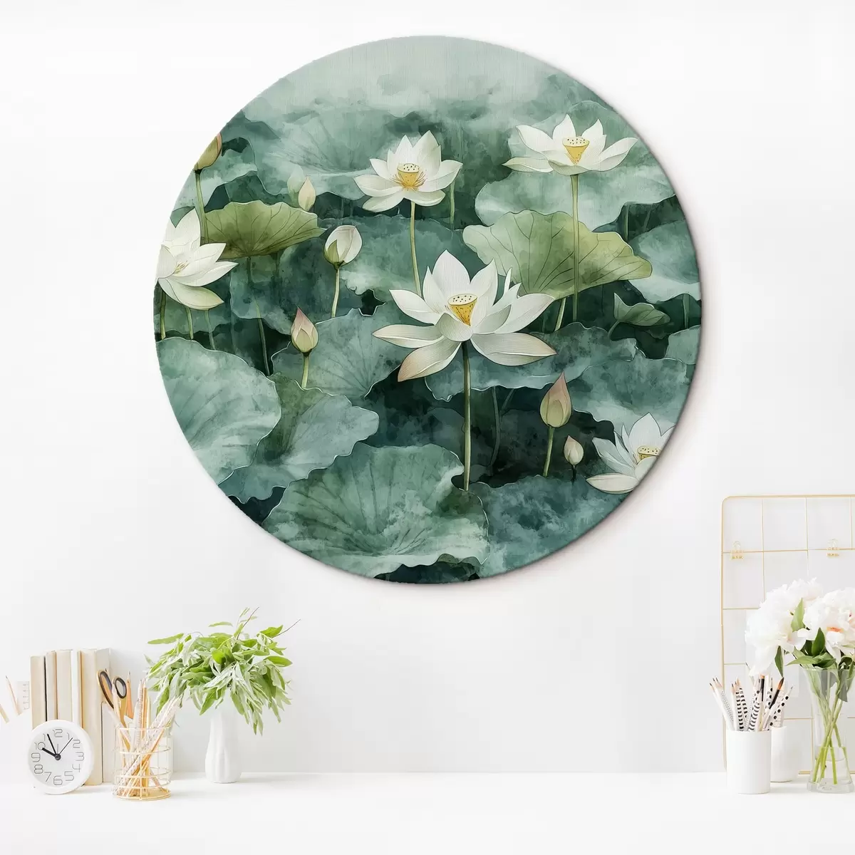 Runde Gemälde Lotosblumen im Teich, Aquarell, grün r41228