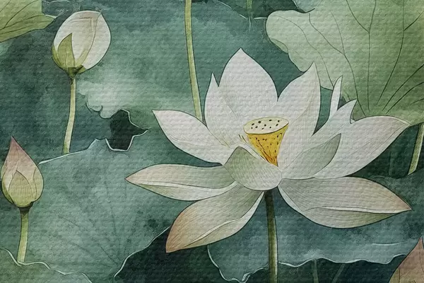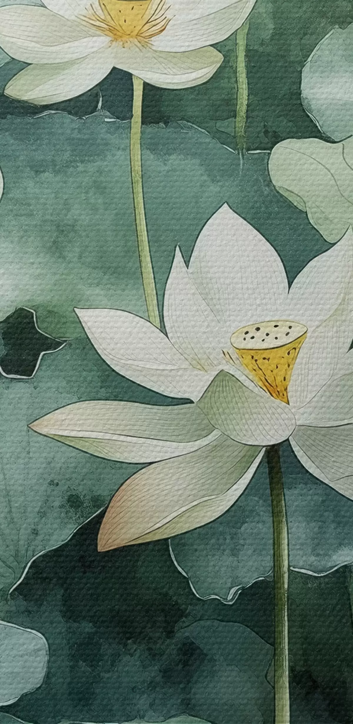 Bild Lotosblumen im Teich, Aquarell, grün Nr r41228