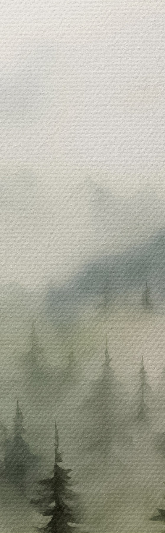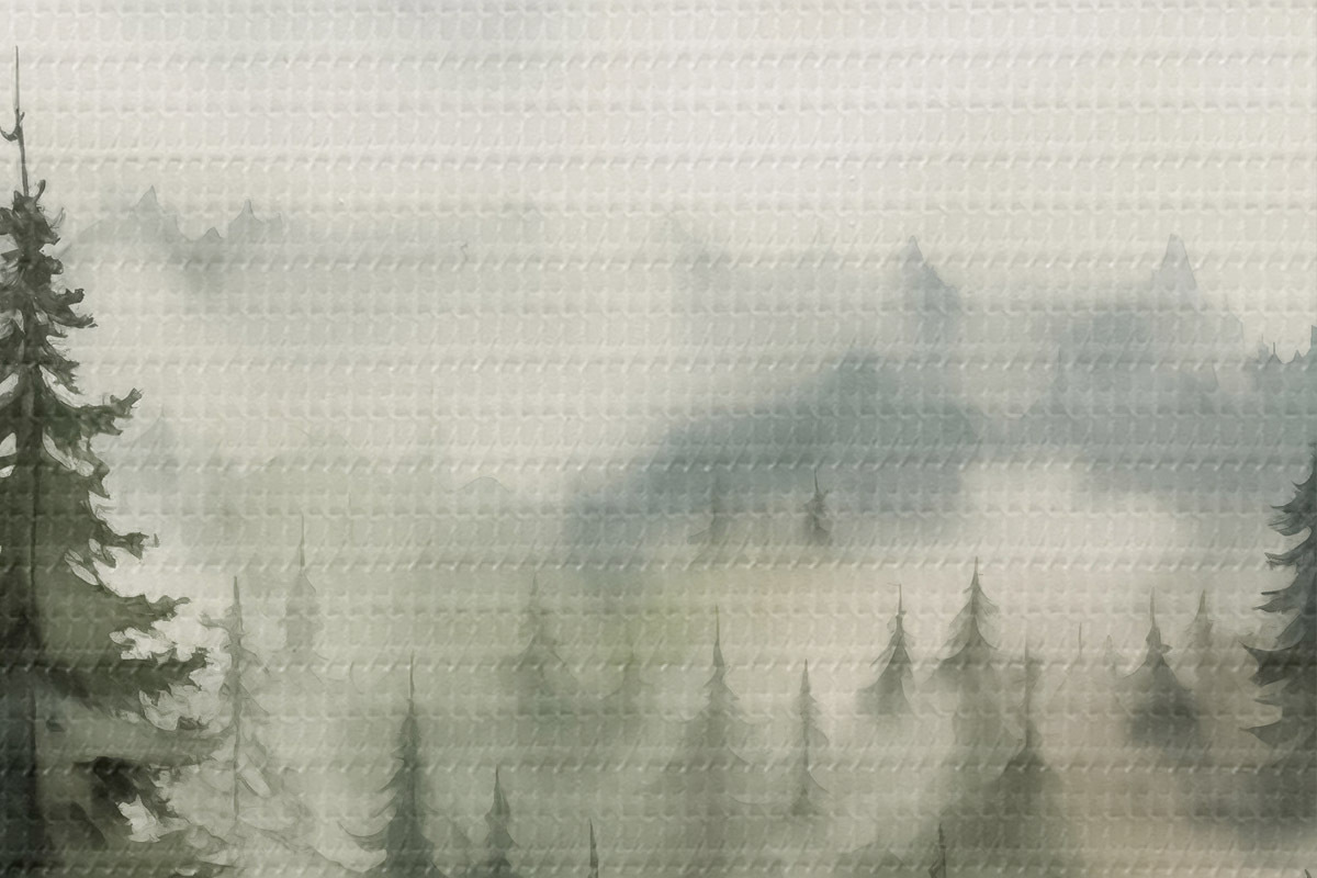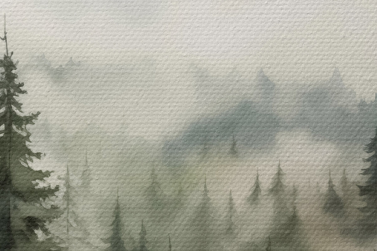Bild Grüner Wald auf dem Hintergrund von Bergen und Nebel Aquarell Nr r41241