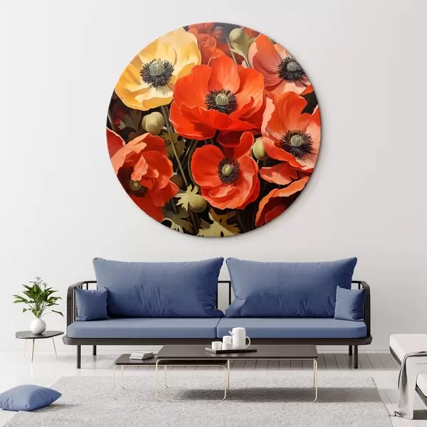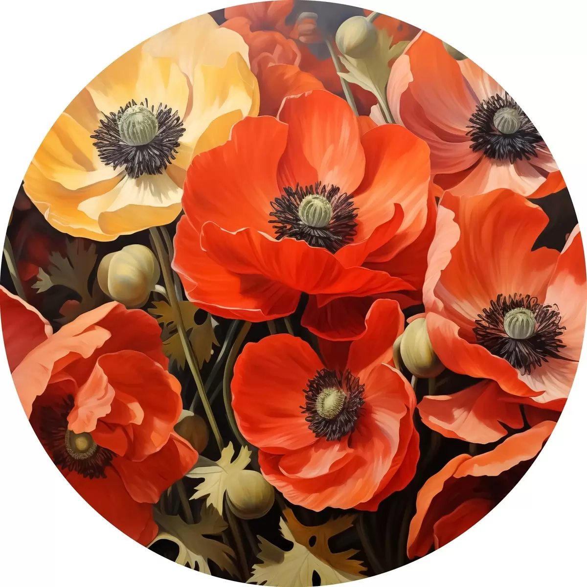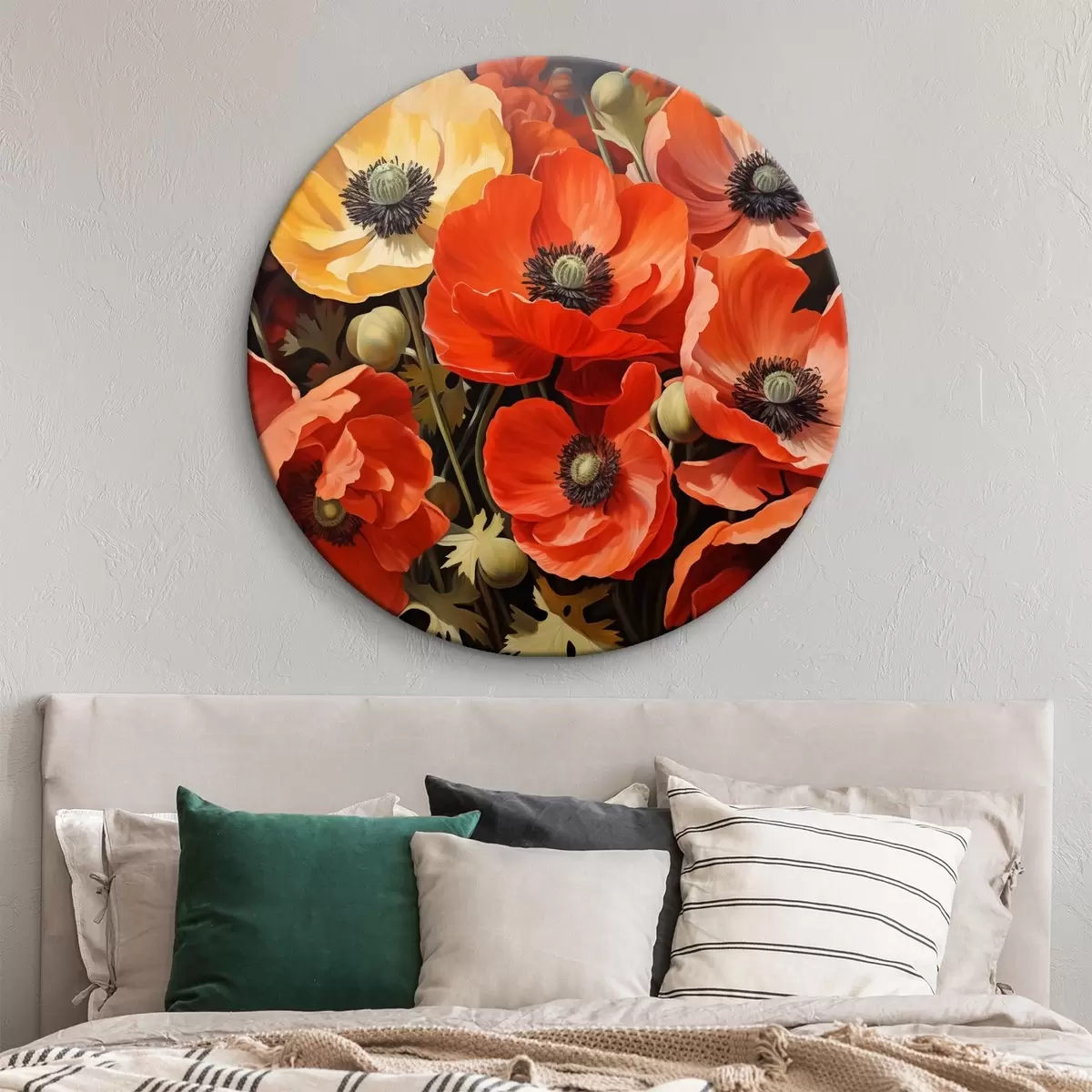 Runde Gemälde Mohnblumen, rot und orange r41243
