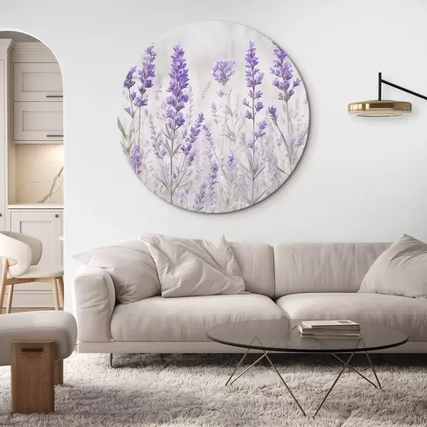 Runde Gemälde Feld von lila Lavendelblumen auf einem unscharfen, strukturierten Hintergrund r41265