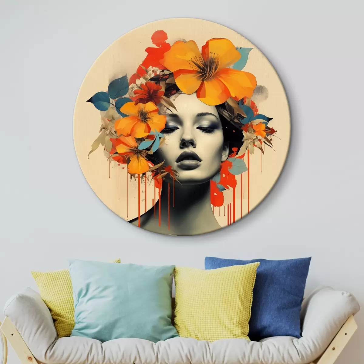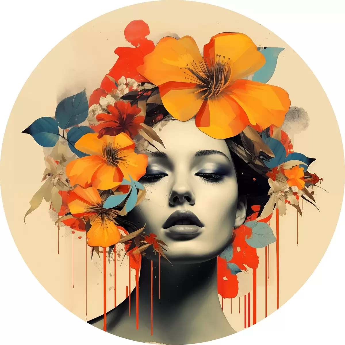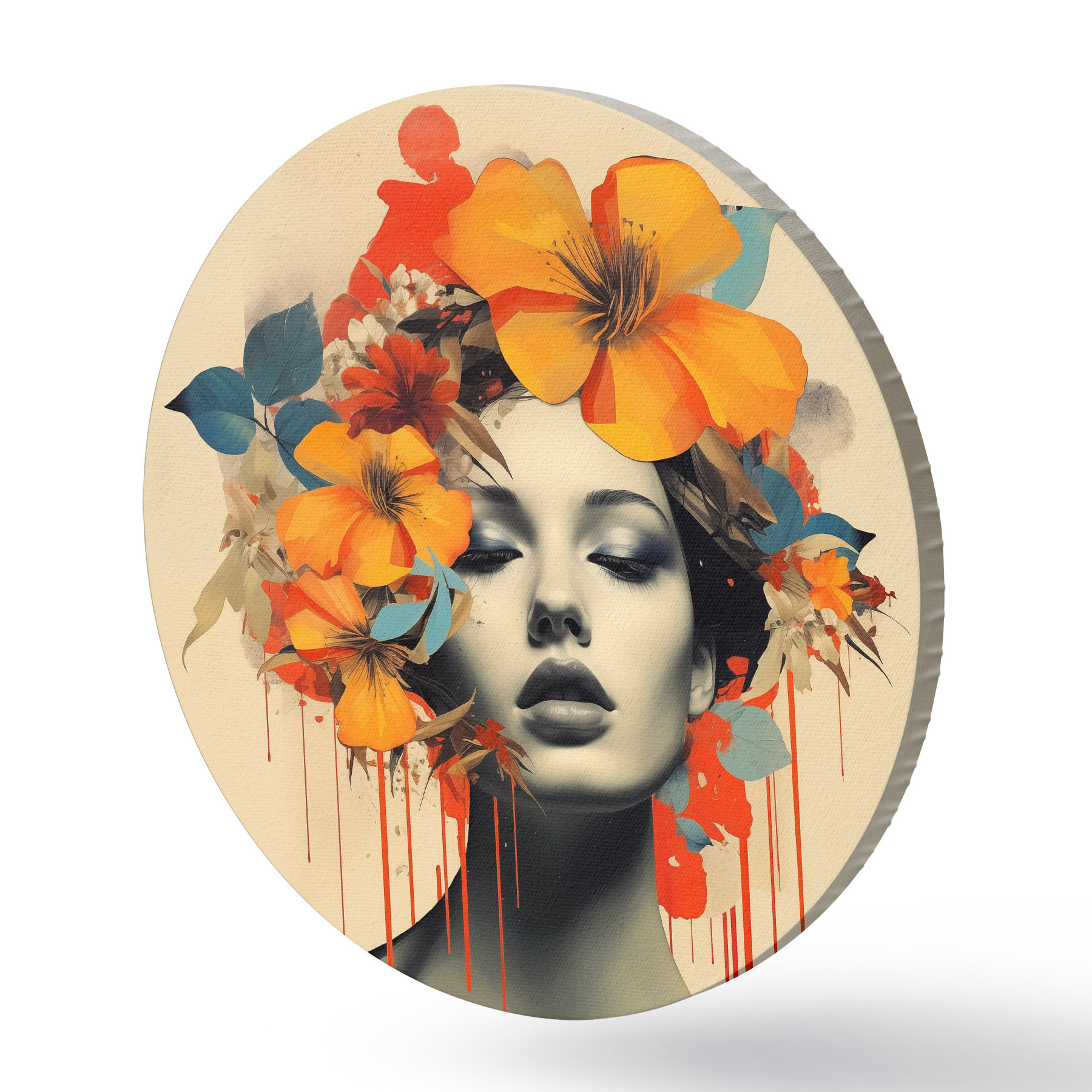 Runde Gemälde Collage Stil Mädchen Porträt mit Blumen r41271
