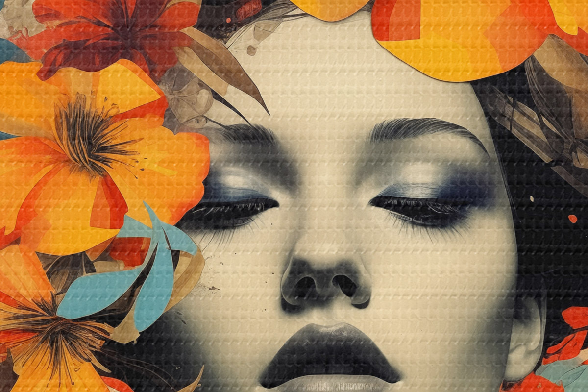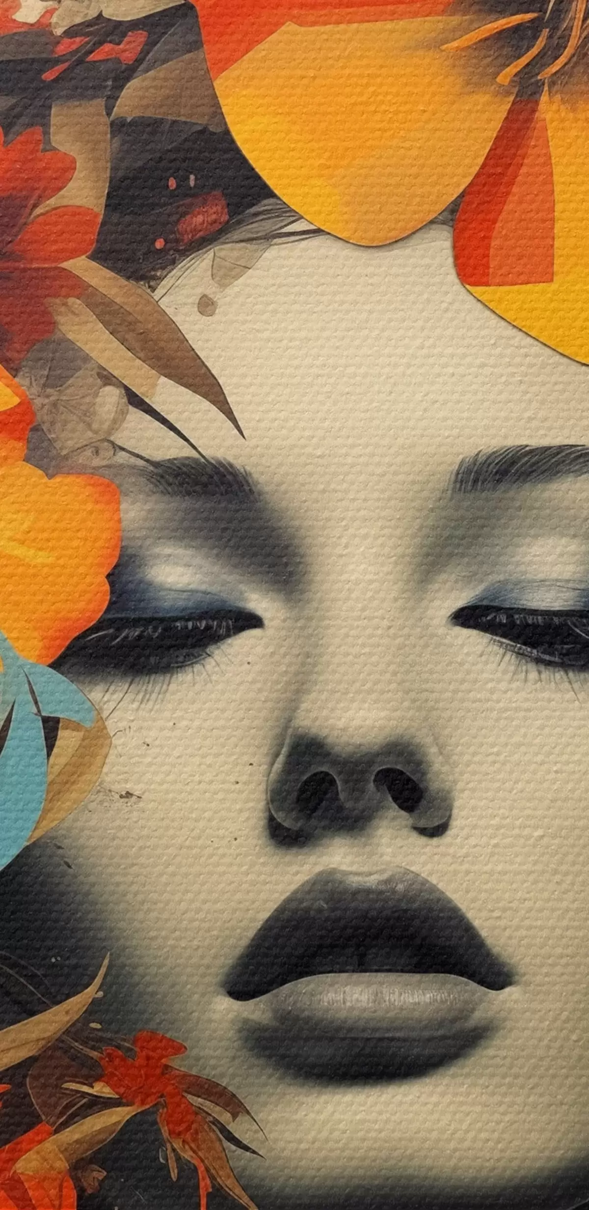Bild Collage Stil Mädchen Porträt mit Blumen Nr r41271