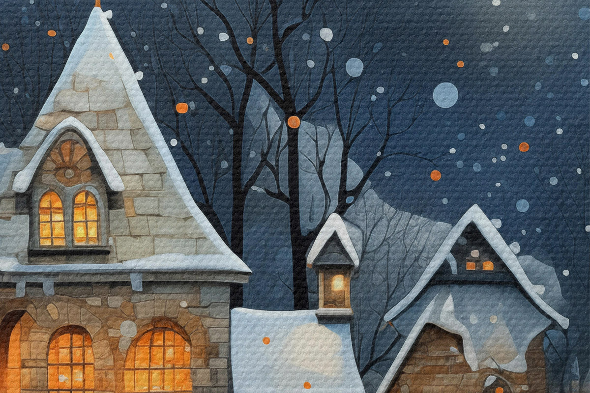 Bild Häuser im Schnee vor dem nächtlichen Sternenhimmel Nr r41276